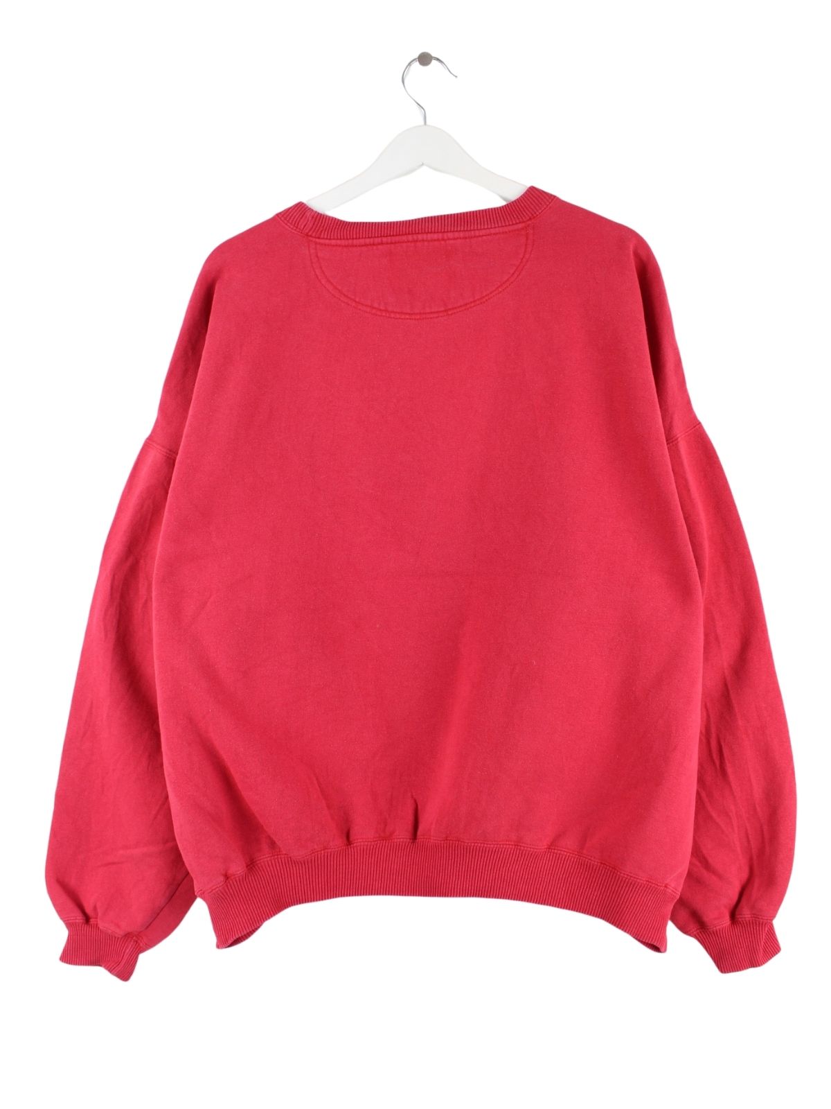 Roter Sweater mit Stickereien der Brand NCAA aus den 90'ern in Größe L. Er ist aus einer Baumwollmischung gemacht und in gutem Zustand bei uns zu bekommen.