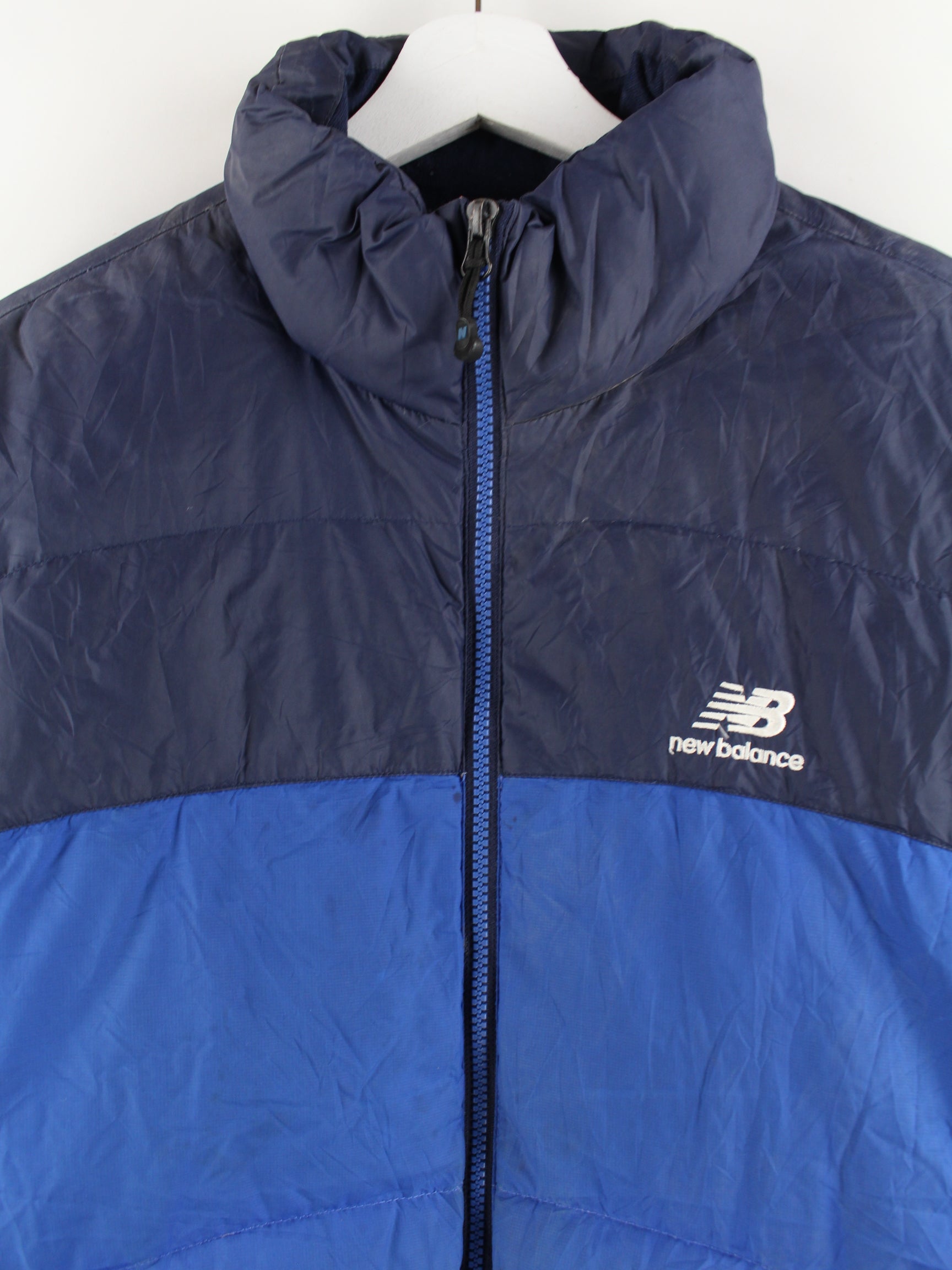 Jacke aus dem Hause New Balance in Größe S. Sie ist aus Synthetik und in Blau zu haben.