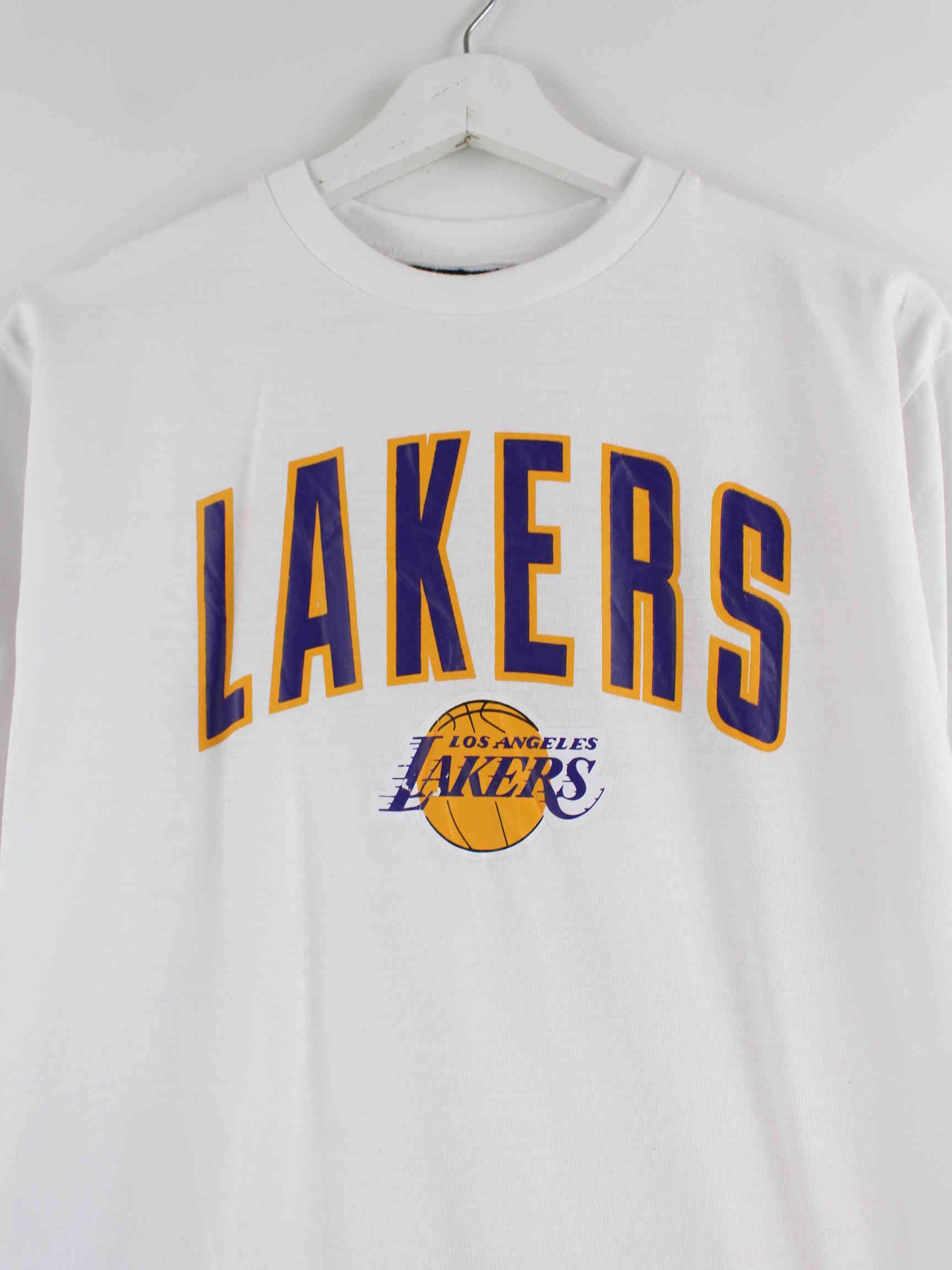 T-Shirt aus dem Hause New Era in Größe XS. Es ist aus einer Baumwollmischung hergestellt und in Weiß lieferbar. Mit schickem Lakers Print.
