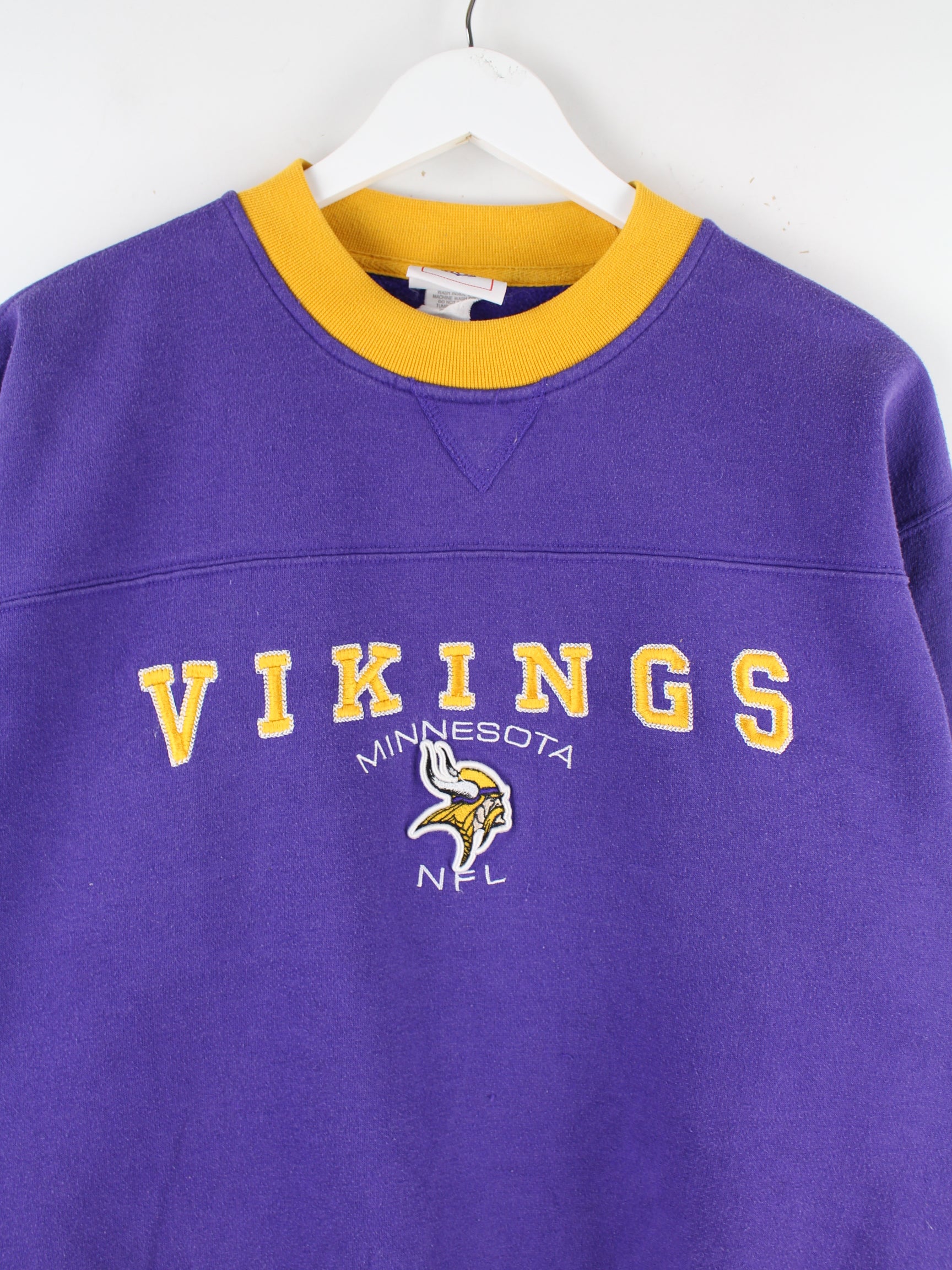 Sweater aus dem Hause NFL mit gesticktem Logo in Größe S. Er ist aus einer Baumwollmischung und in Lila bei uns vorrätig.