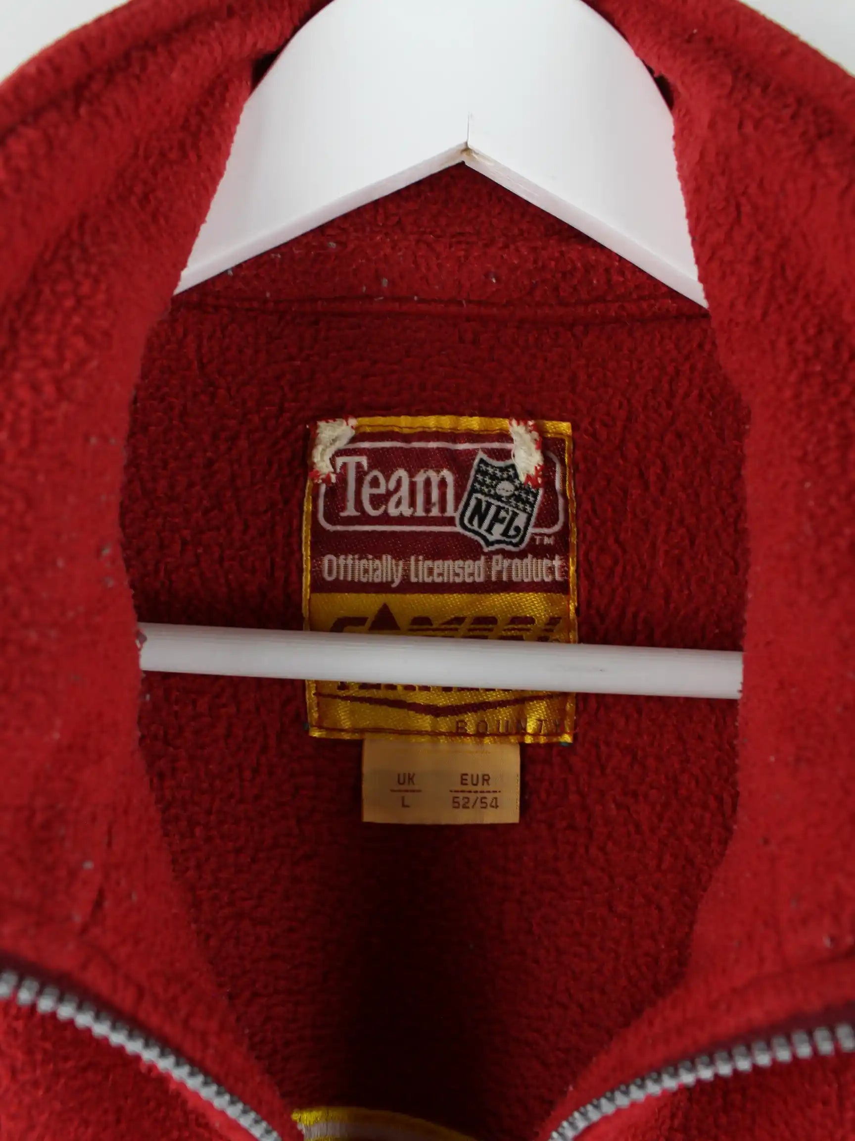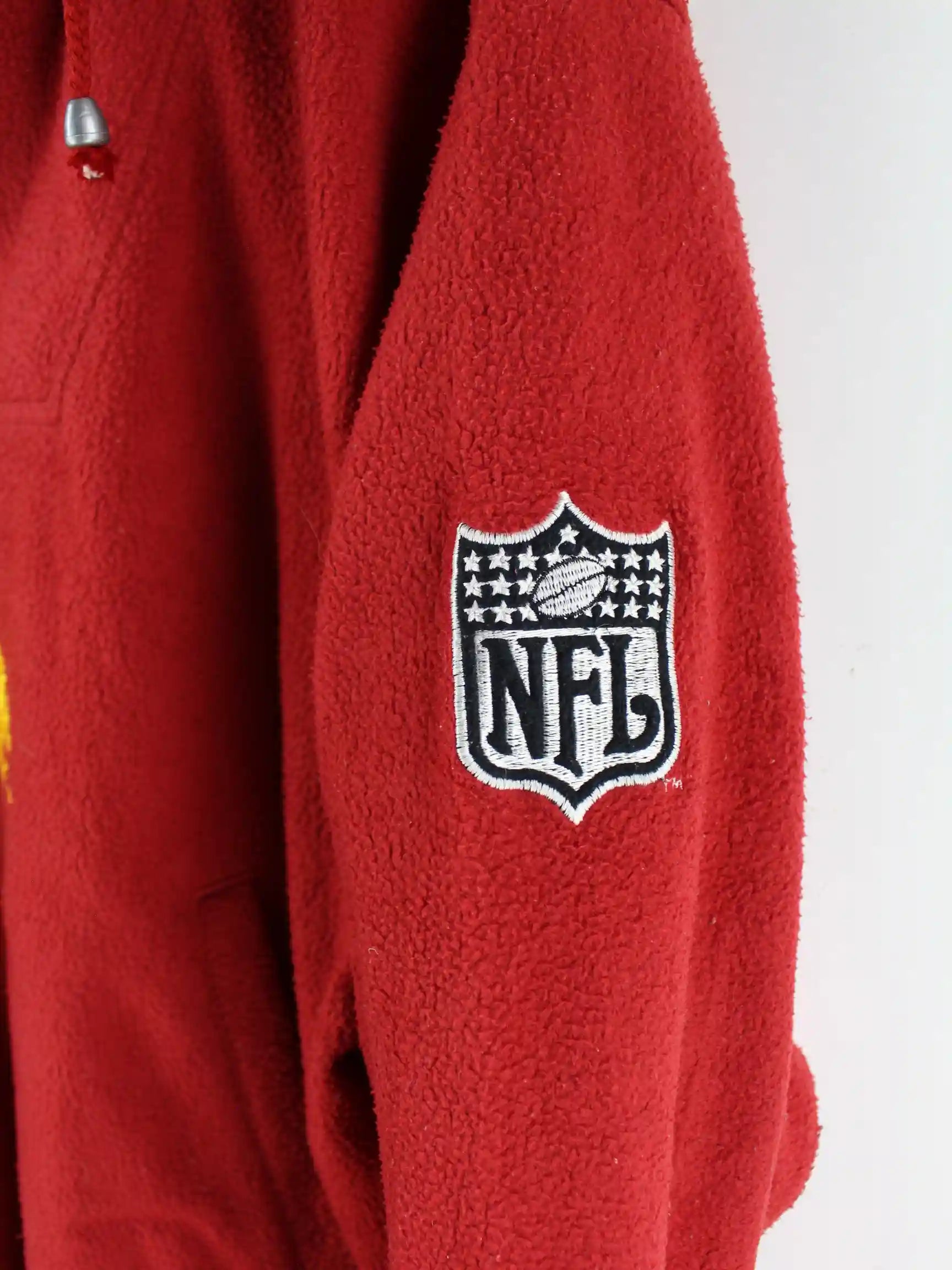 Sweater der Brand NFL in Größe L aus den 90'ern. Er ist aus weichem Fleece angefertigt und in Rot in Stock.