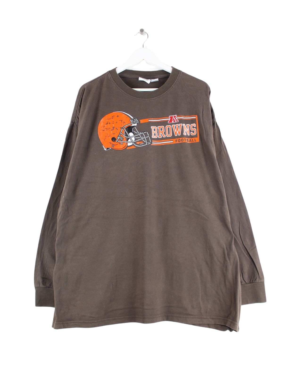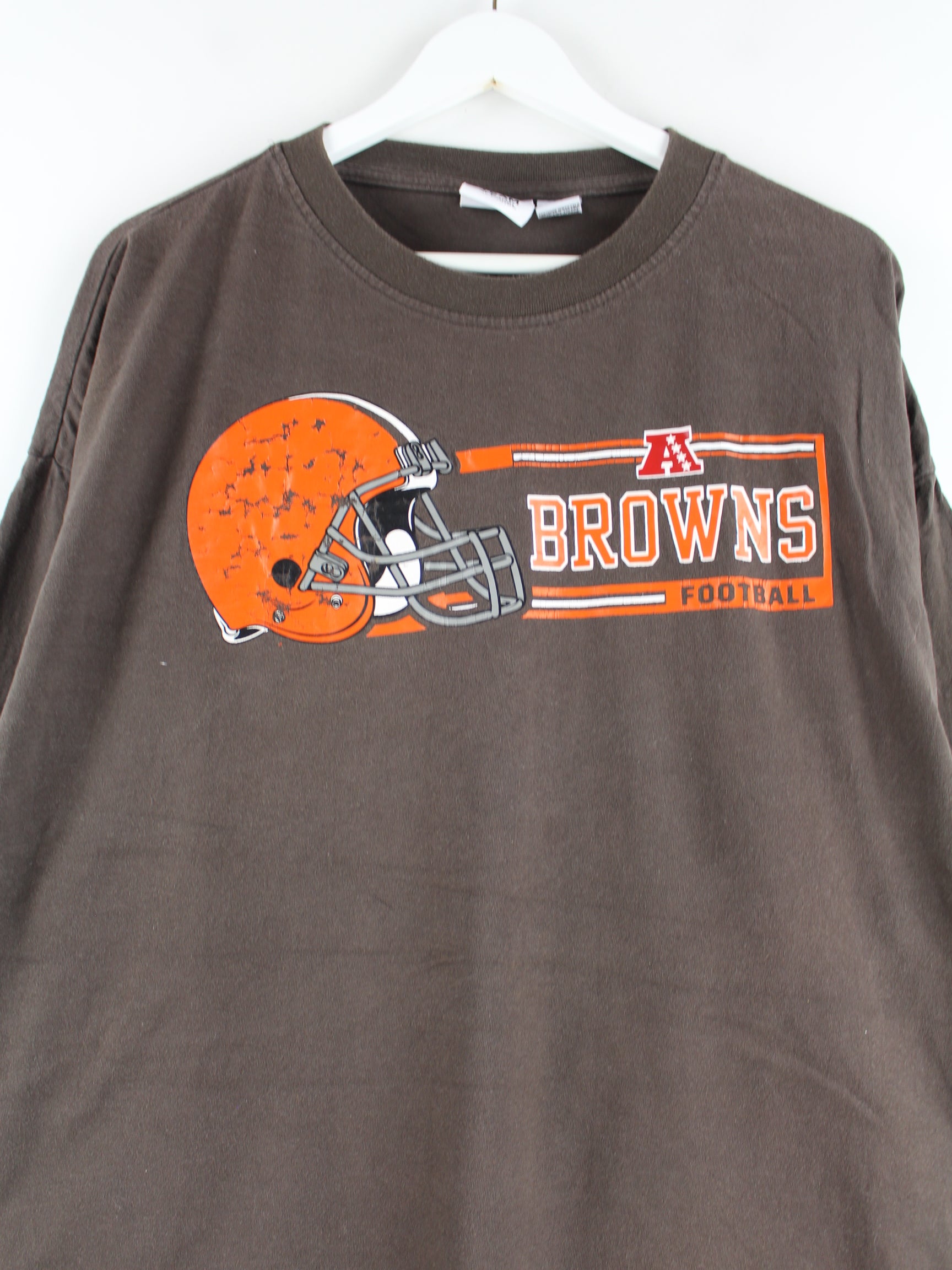 Braunes Sweatshirt vom Brand NFL in Größe 3XL. Es ist aus Baumwolle hergestellt und in gutem Zustand auf Lager. Mit chiquem Browns Print.