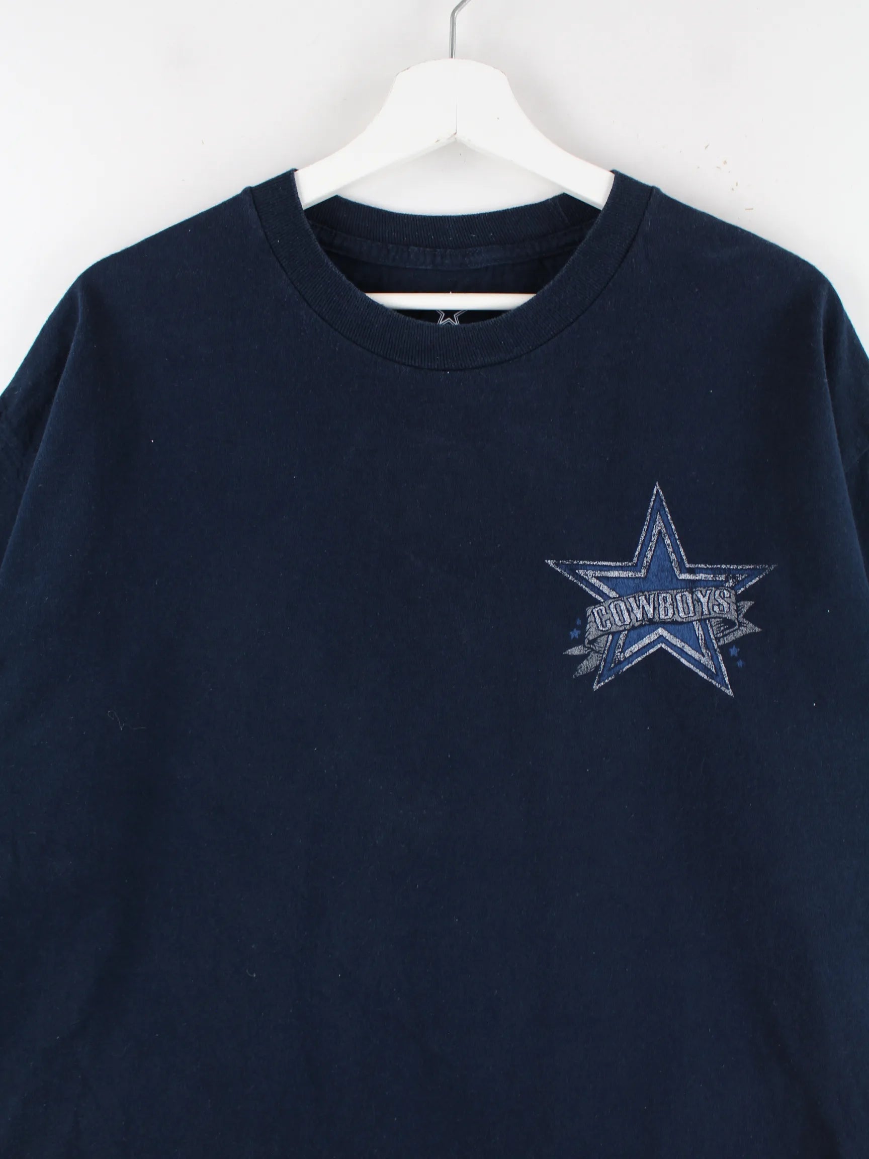 T-Shirt des Labels NFL in Größe XXL. Es ist aus Baumwolle gemacht und in Schwarz bei uns vorrätig. Mit tollem Cowboys Print.