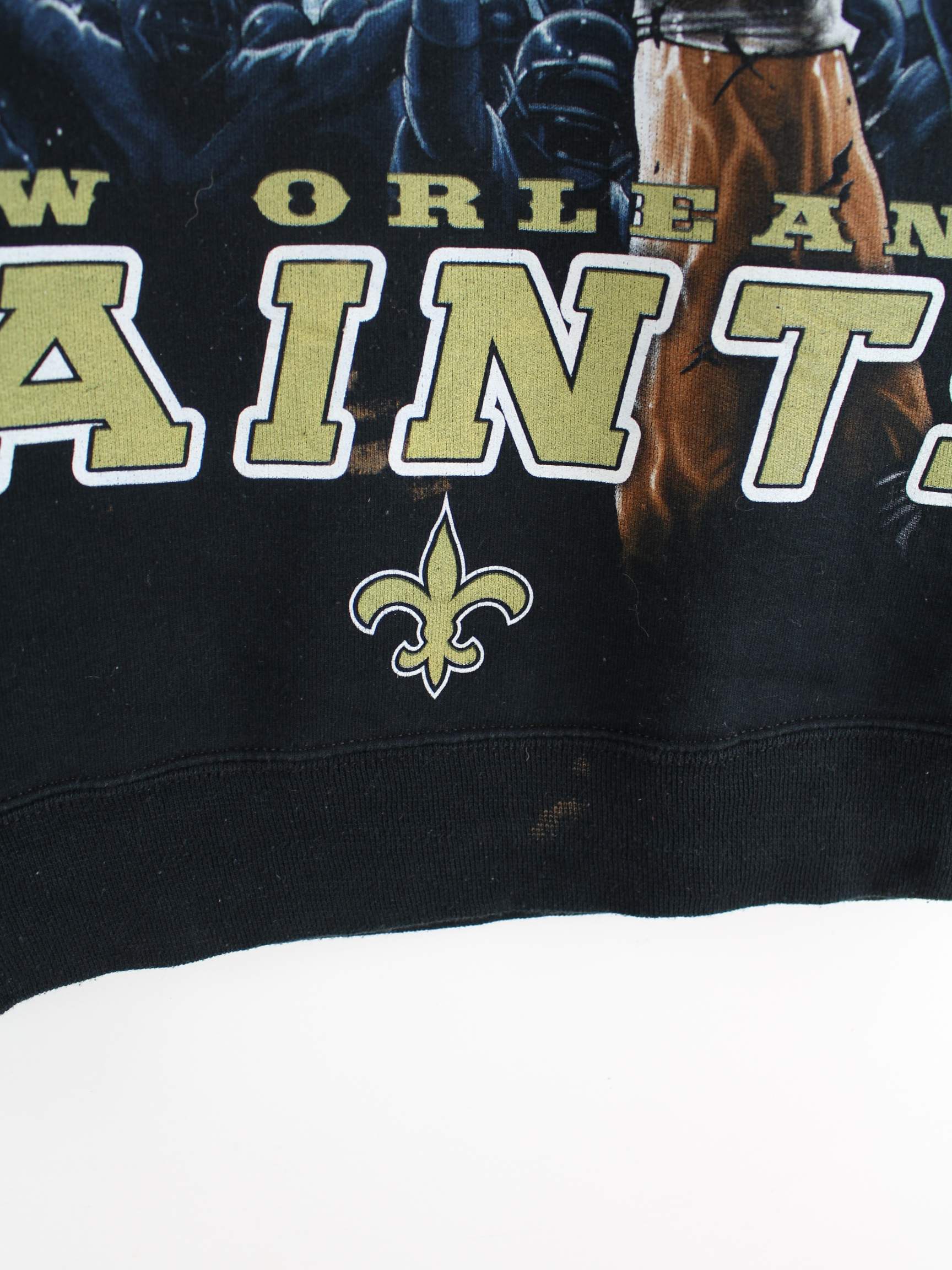 Sweater der Brand NFL in Größe M. Er ist aus einer Baumwollmischung hergestellt und in Schwarz auf Lager. Mit tollem Saints Print.