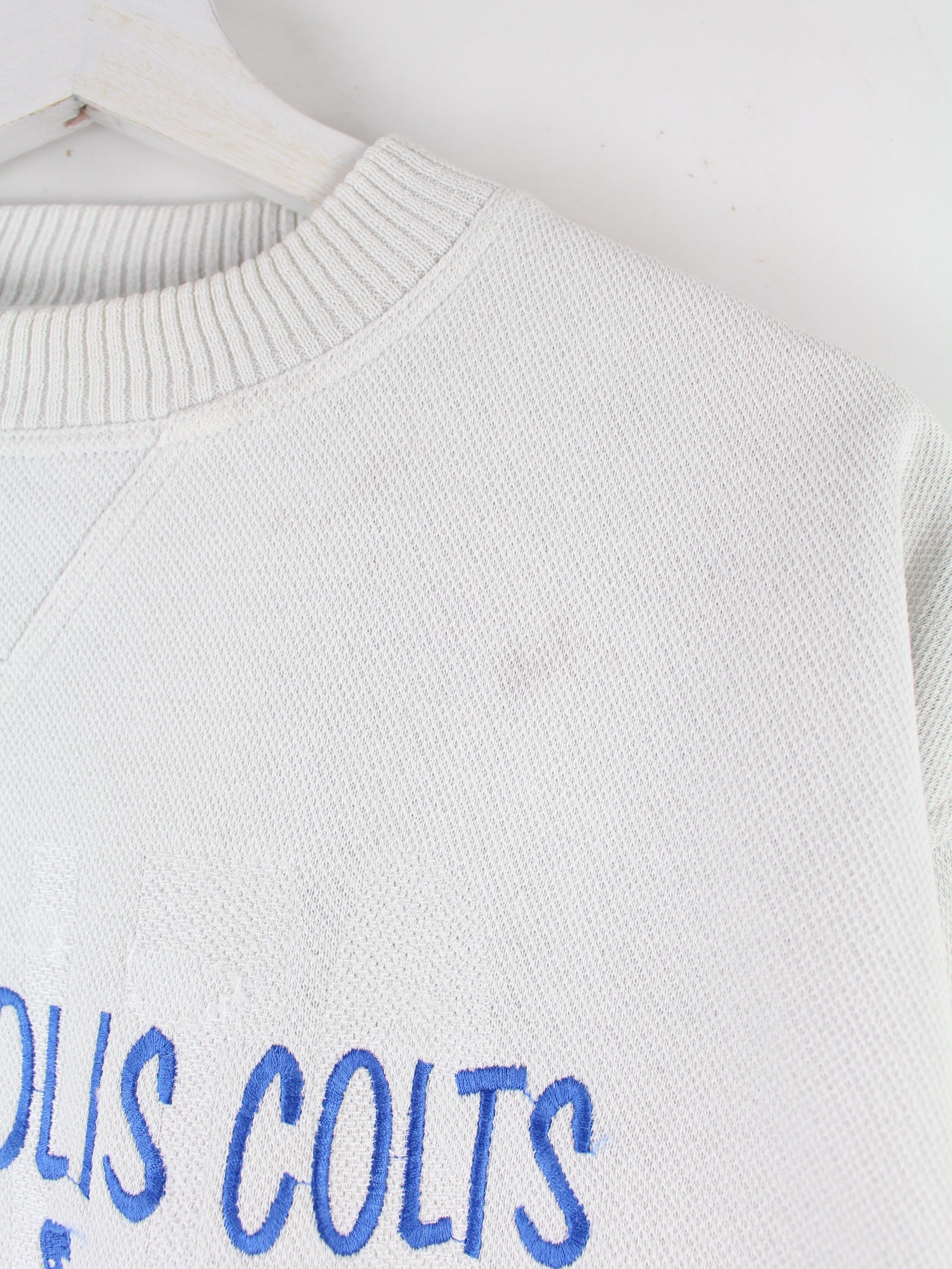 Grauer Sweater mit Stickereien des Labels NFL in Größe M. Er ist aus einer Baumwollmischung und in gutem Zustand in Stock.