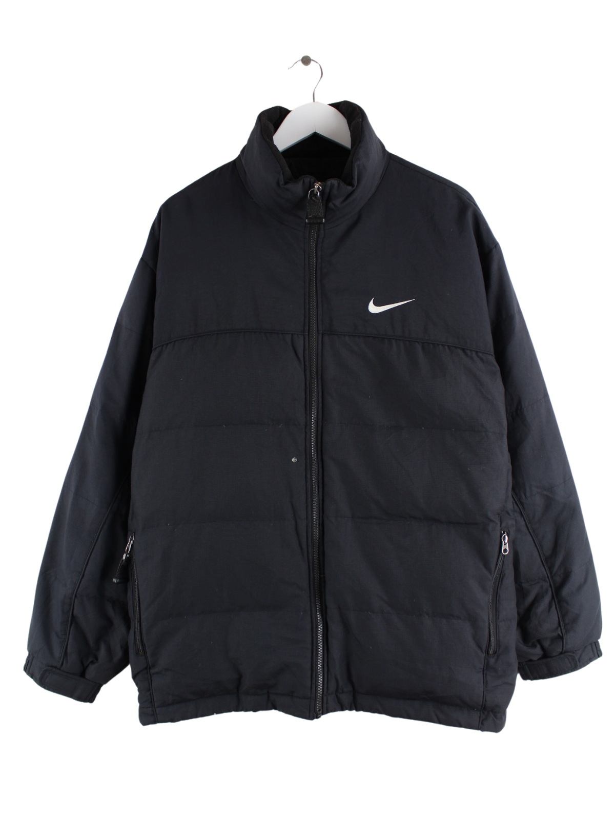 Schwarze Jacke aus dem Hause Nike in Größe L. Sie ist aus Synthetik gemacht. Den Zustand würden wir als 'In Ordnung' bezeichnen (vergl. Bilder).