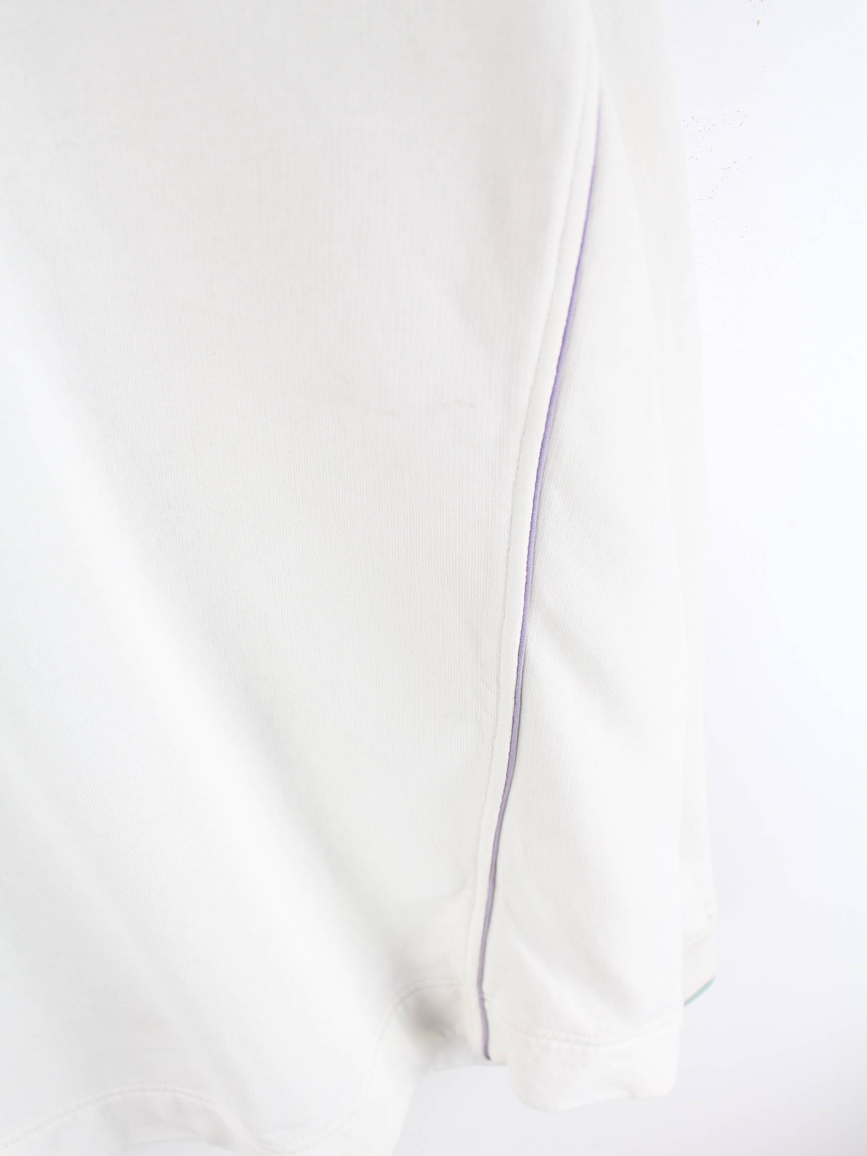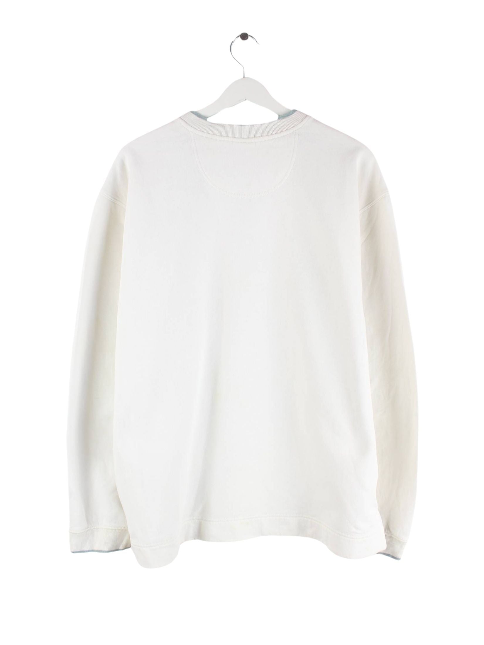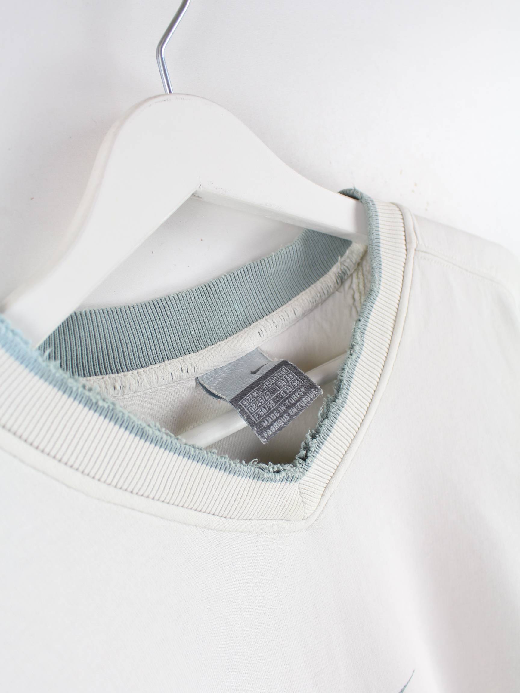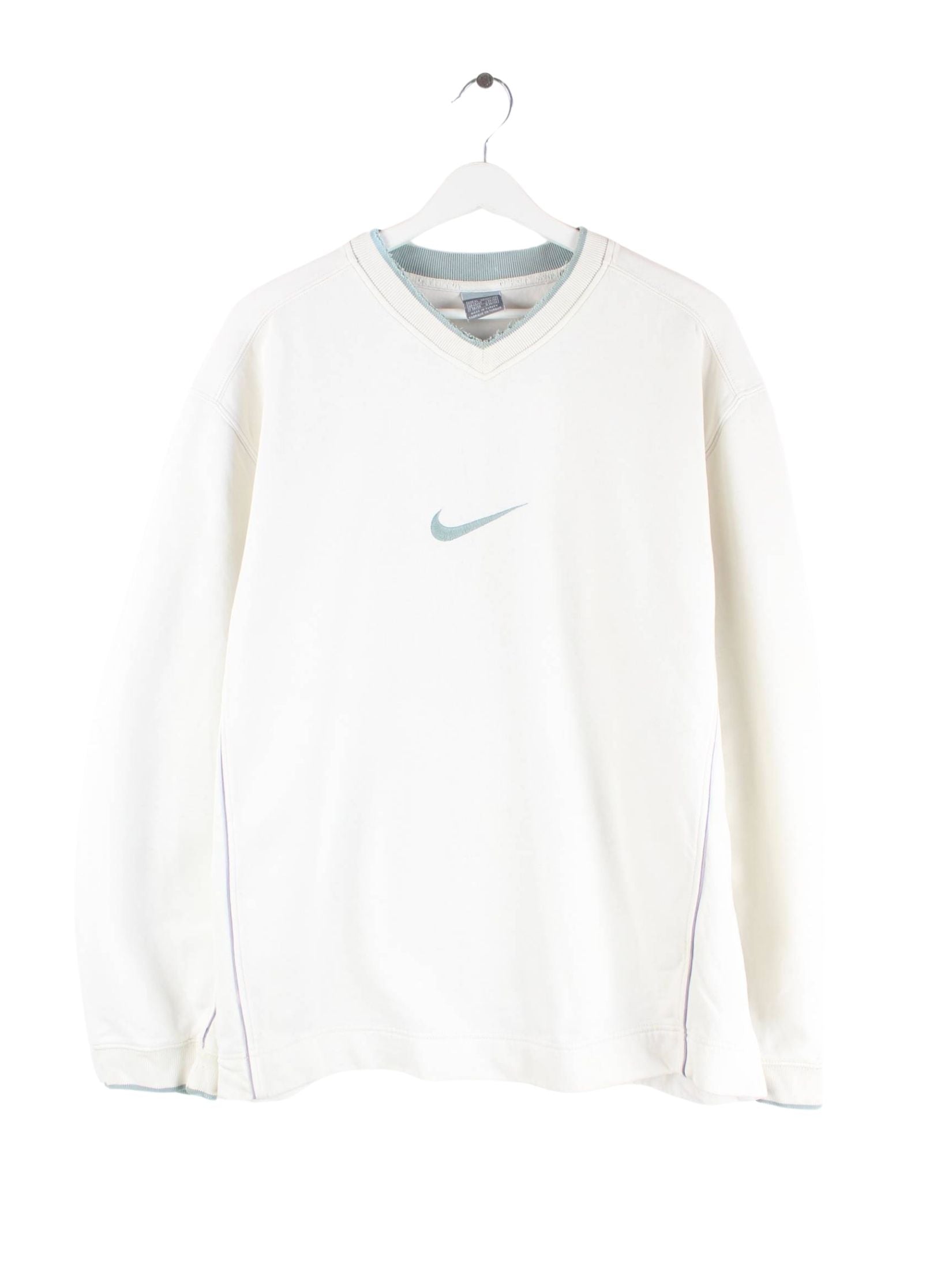 Sweater von Nike mit Stickereien in Größe XL. Er ist aus einer Baumwollmischung produziert und in Weiß zu haben.