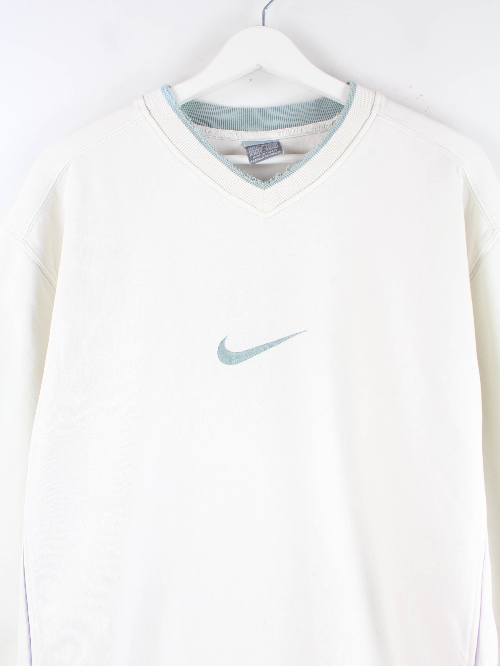 Nike 00s Big Swoosh Embroidered V-Neck Sweater Weiß XL