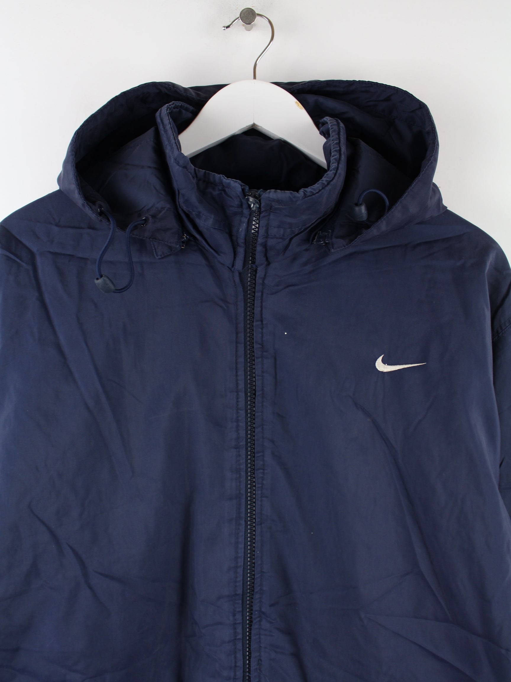 Blaue Jacke vom Label Nike in Größe M. Sie ist aus Synthetik gefertigt und in gutem Zustand lieferbar.