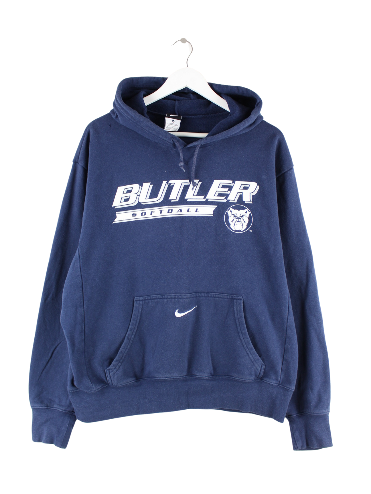 Blauer Hoodie vom Label Nike in Größe M. Er ist aus einer Baumwollmischung hergestellt und in gutem Zustand lieferbar.