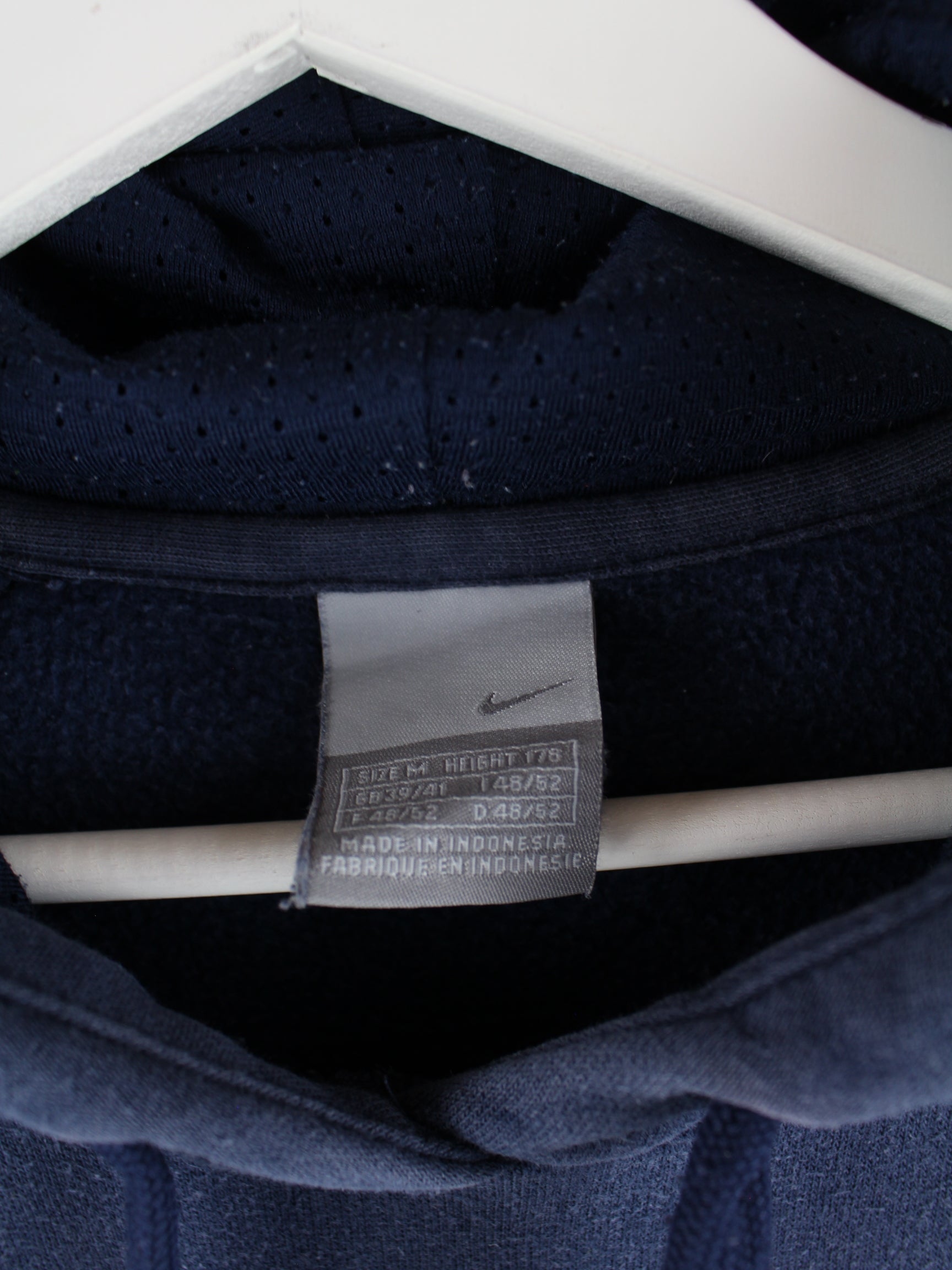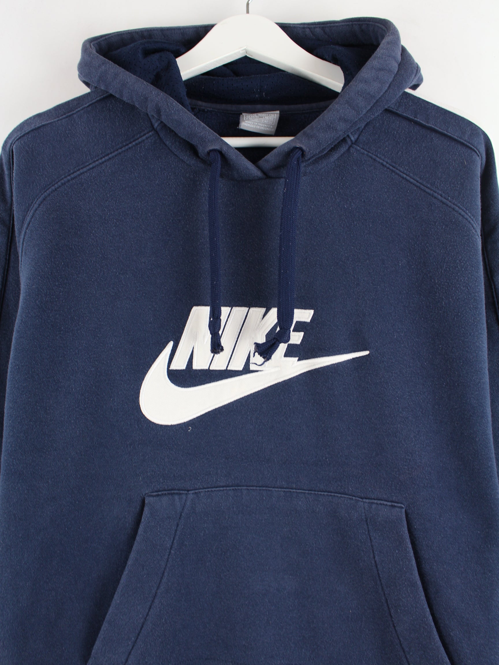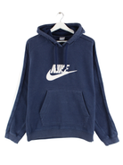 Hoodie des Labels Nike mit gestickten Motiven in Größe M. Er ist aus einer Baumwollmischung und in Blau bei uns zu bekommen.