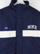 Jacke vom Brand Nike mit Stickereien in Größe M. Sie ist aus Synthetik gefertigt und in Blau bei uns vorrätig.