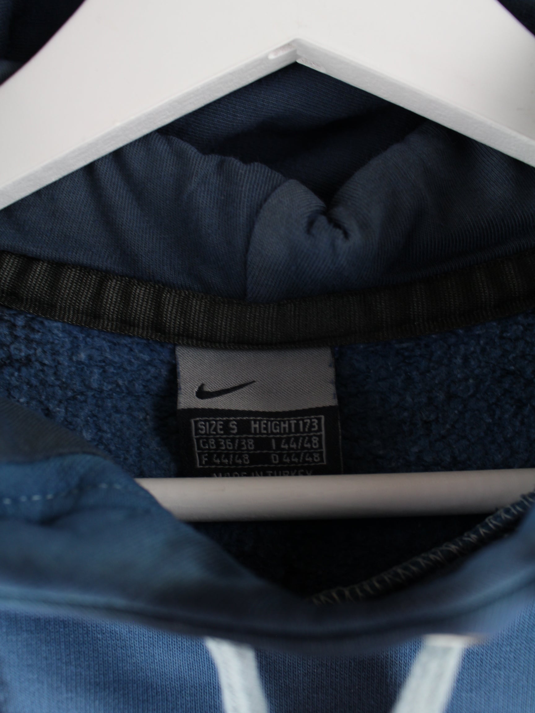 Hoodie des Labels Nike mit Stickereien in Größe S. Er ist aus einer Baumwollmischung produziert und in Blau bei uns zu bekommen.