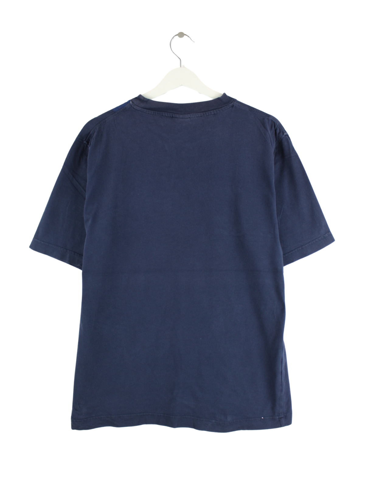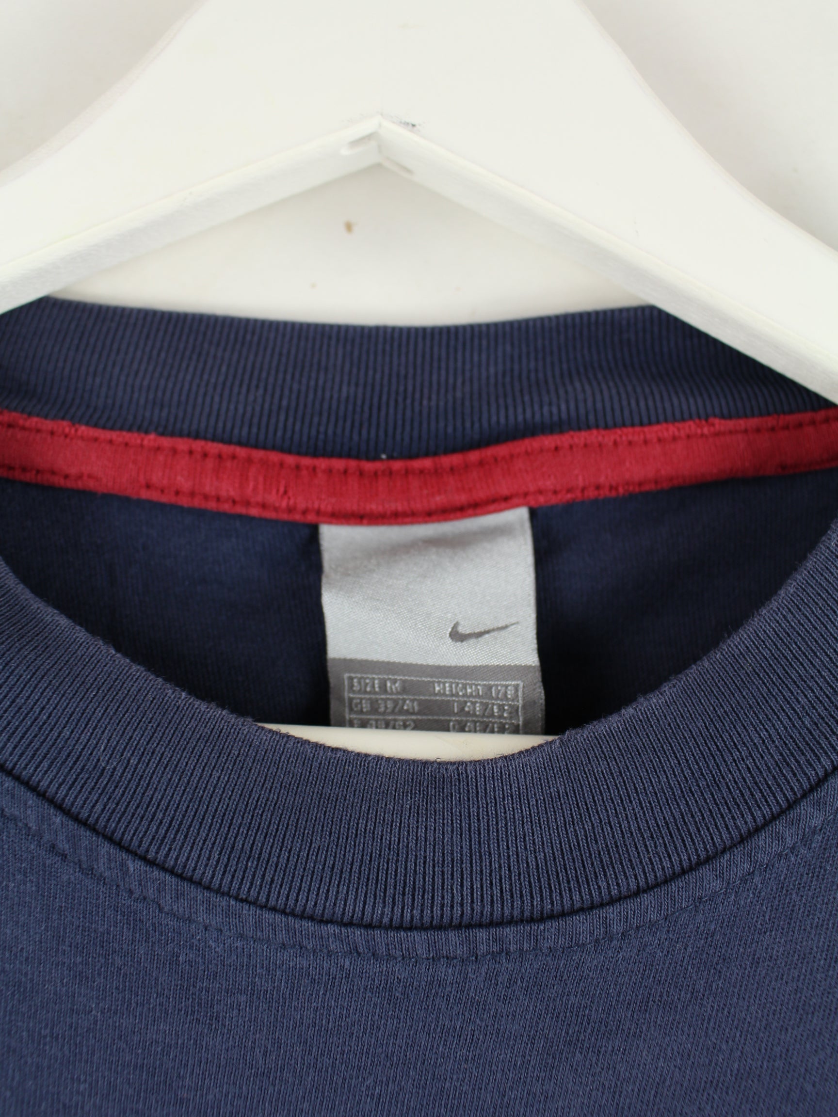 Blaues T-Shirt vom Label Nike in Größe M. Es ist aus Baumwolle produziert und in gutem Zustand zu bekommen. Mit schickem Barcelona Print.
