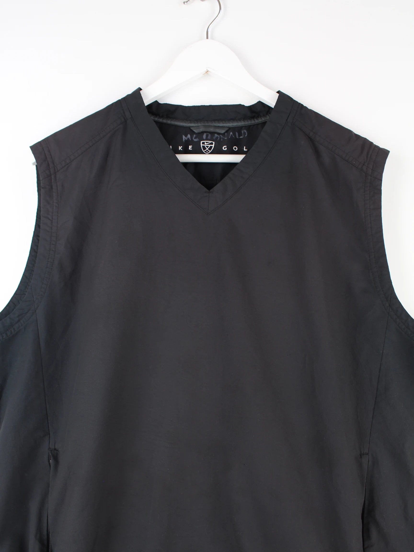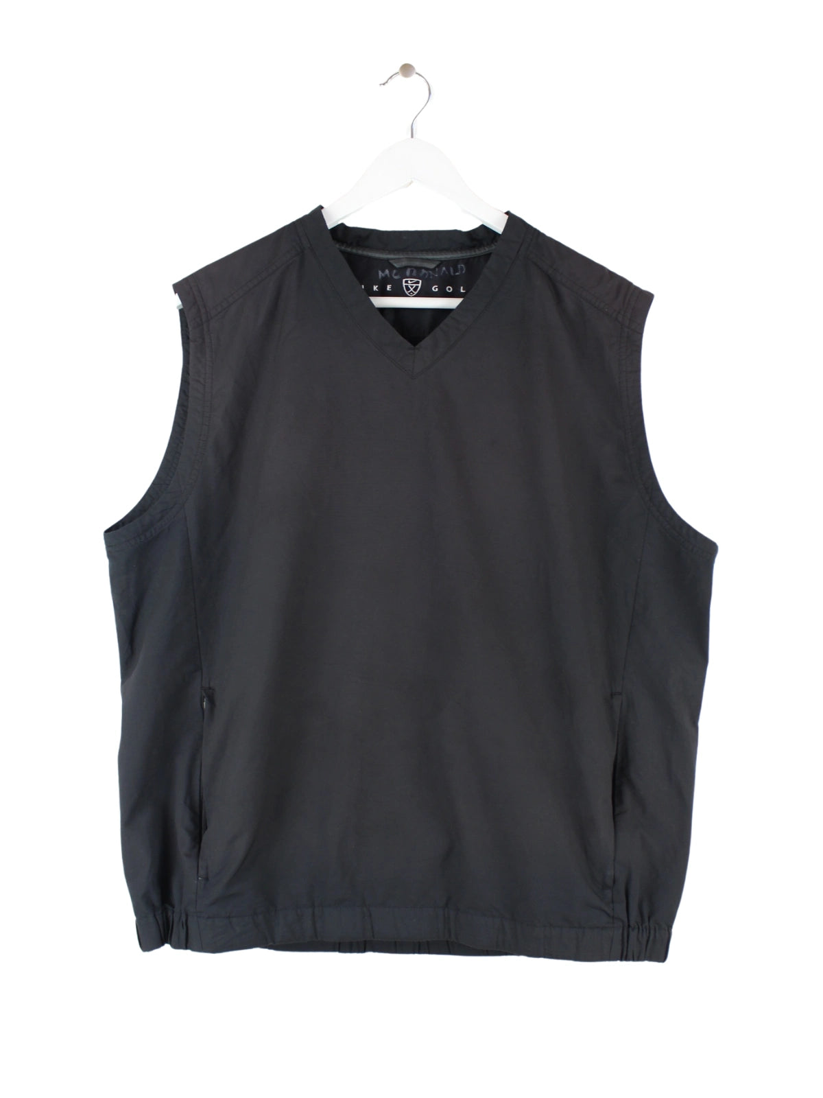 Schwarzer Pullunder vom Label Nike in Größe M. Er ist aus Synthetik produziert und in sehr gutem Zustand im Angebot.