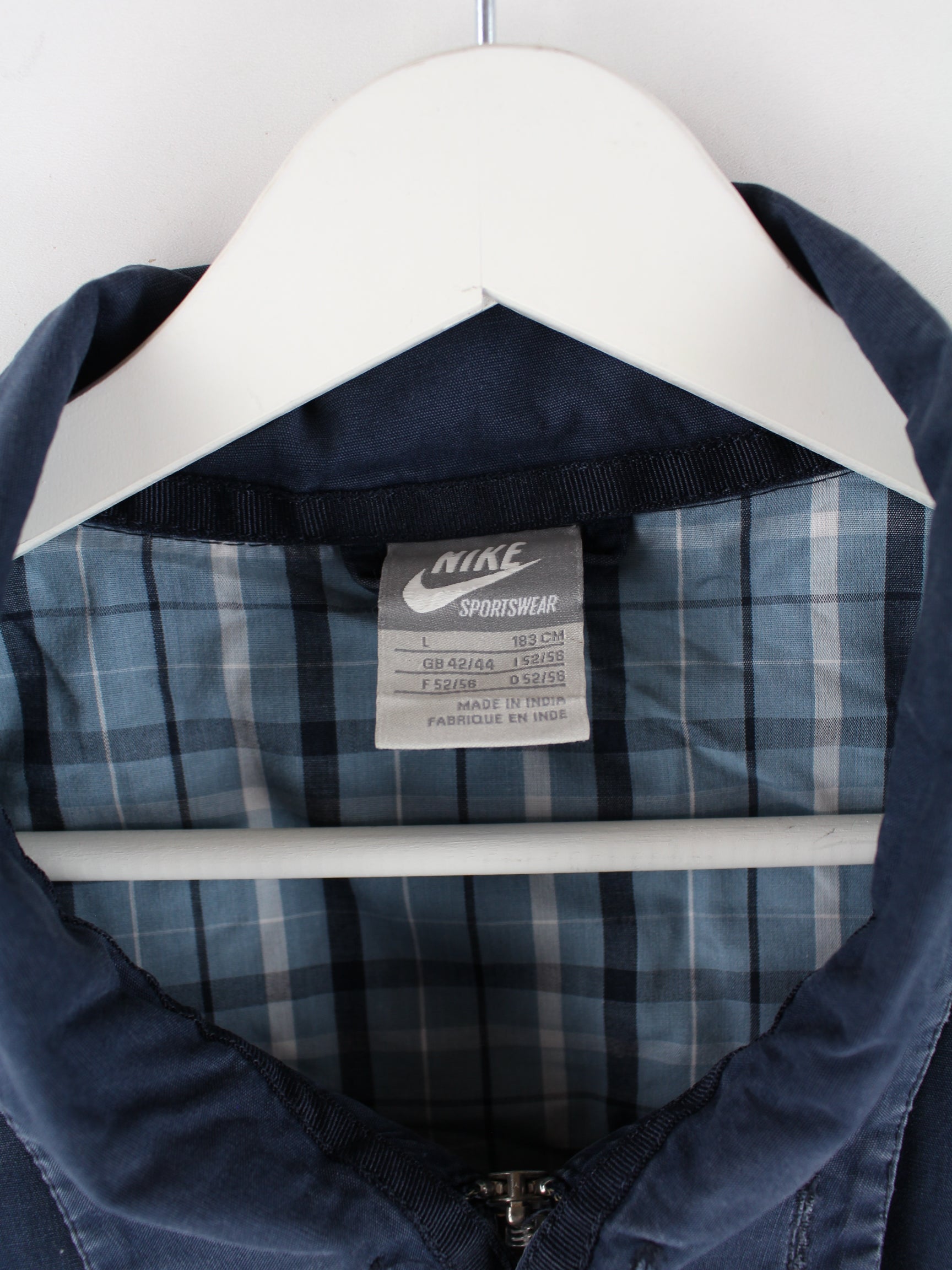 Leichte Jacke vom Label Nike in Größe L. Sie ist aus einer Baumwollmischung angefertigt und in Blau auf Lager.