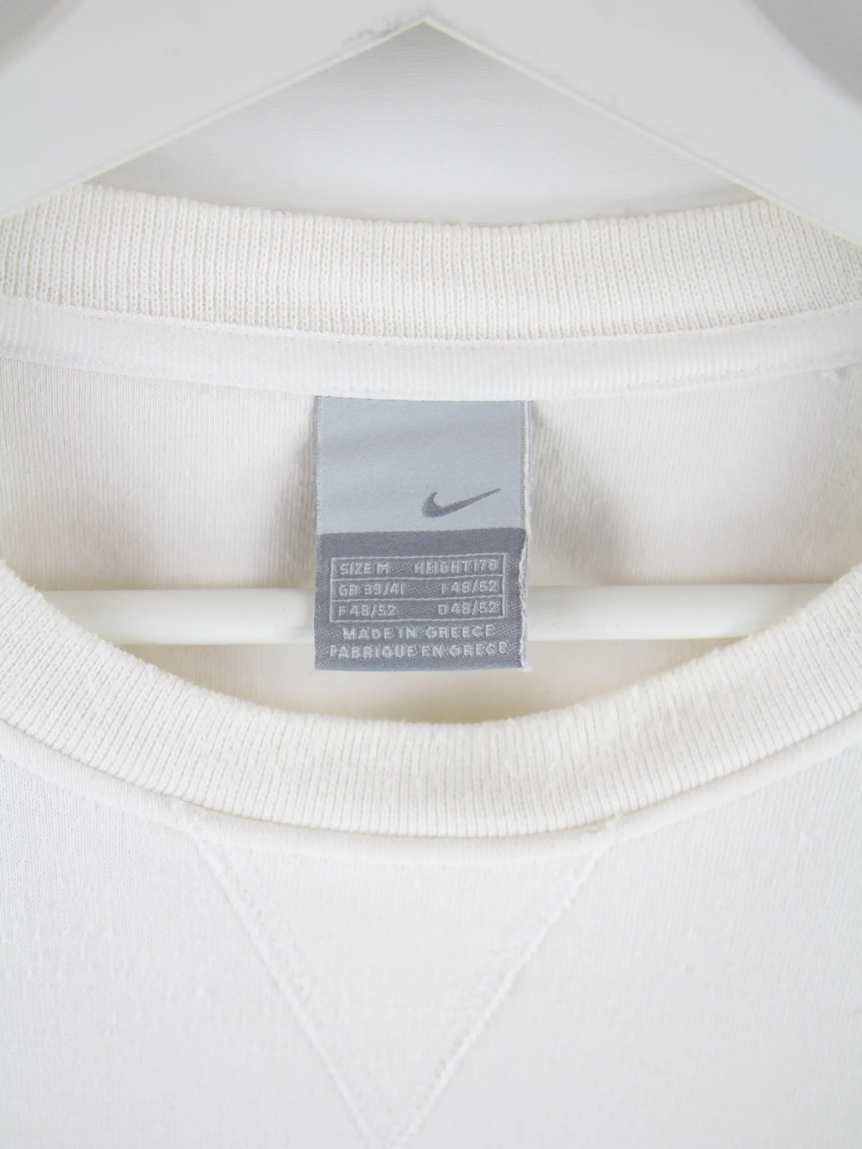 Sweater des Labels Nike in Größe M. Er ist aus einer Baumwollmischung hergestellt und in Weiß auf Lager. Mit seltenem Swoosh Print.