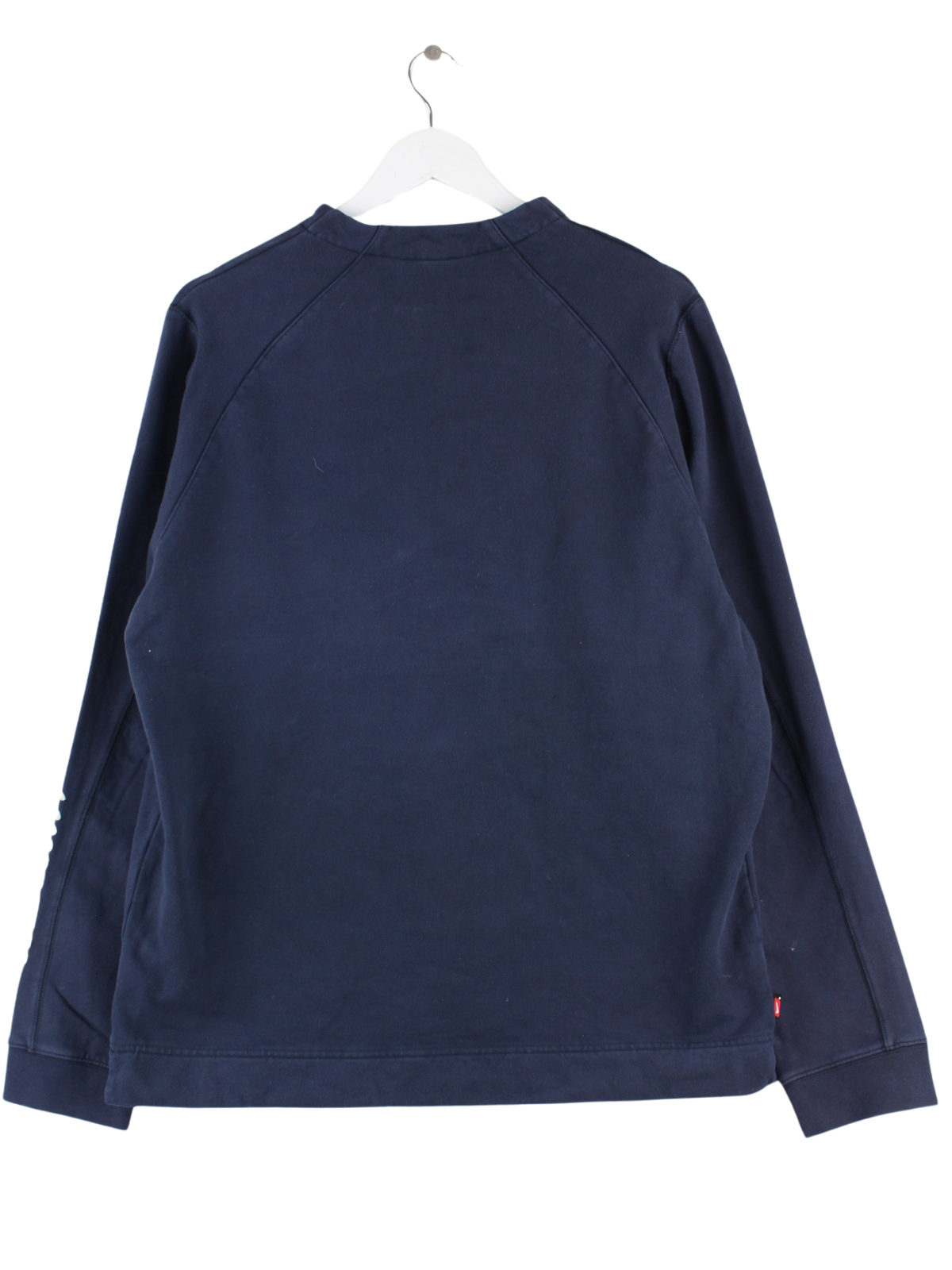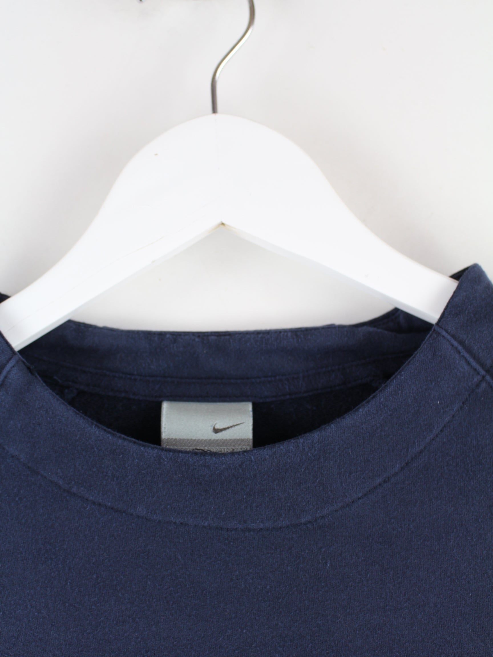 Blauer Sweater der Marke Nike in Größe L. Er ist aus einer Baumwollmischung gefertigt und in gutem Zustand vorrätig. Mit schickem 00s Print.