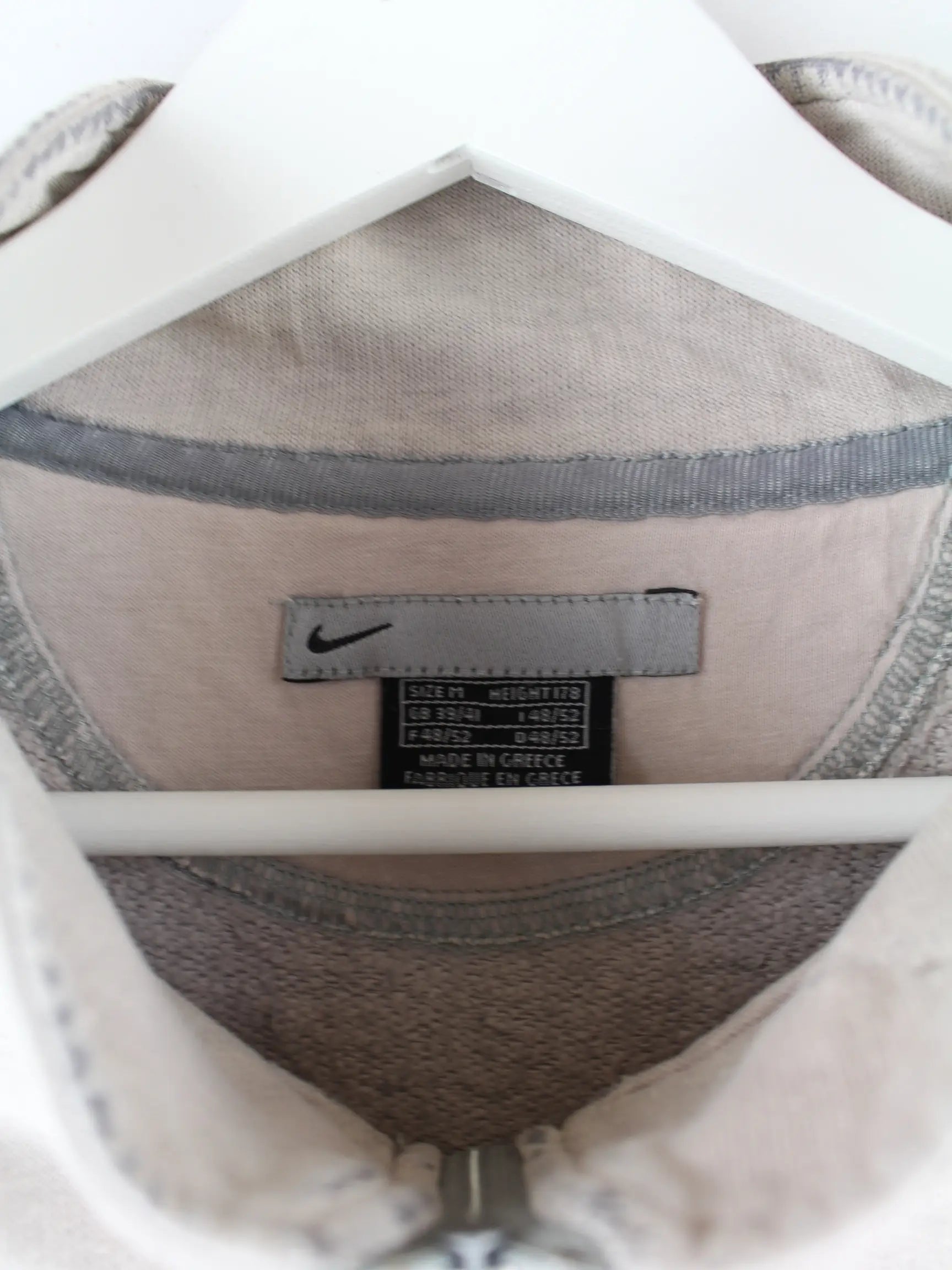 Sweater aus dem Hause Nike mit half Zip in Größe M. Er ist aus einer Baumwollmischung produziert und in Beige auf Lager.