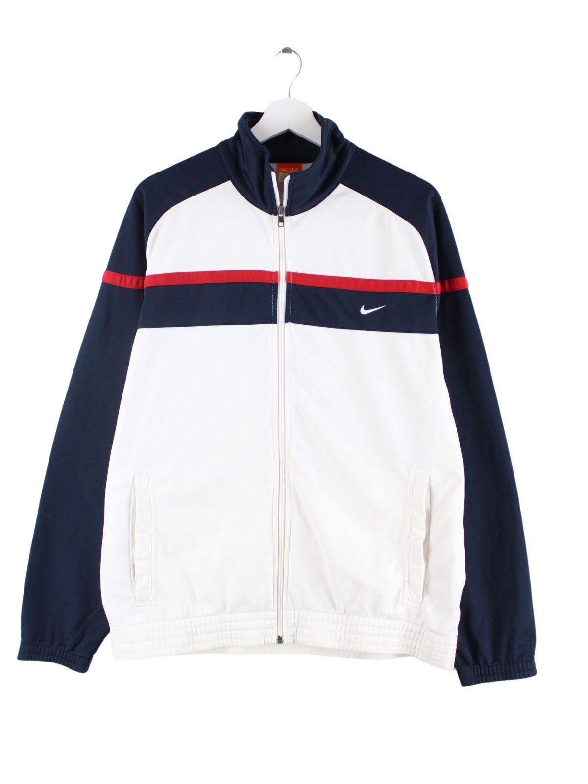 Trainingsjacke vom Label Nike in Größe L. Sie ist aus Synthetik produziert und in Weiß lieferbar.