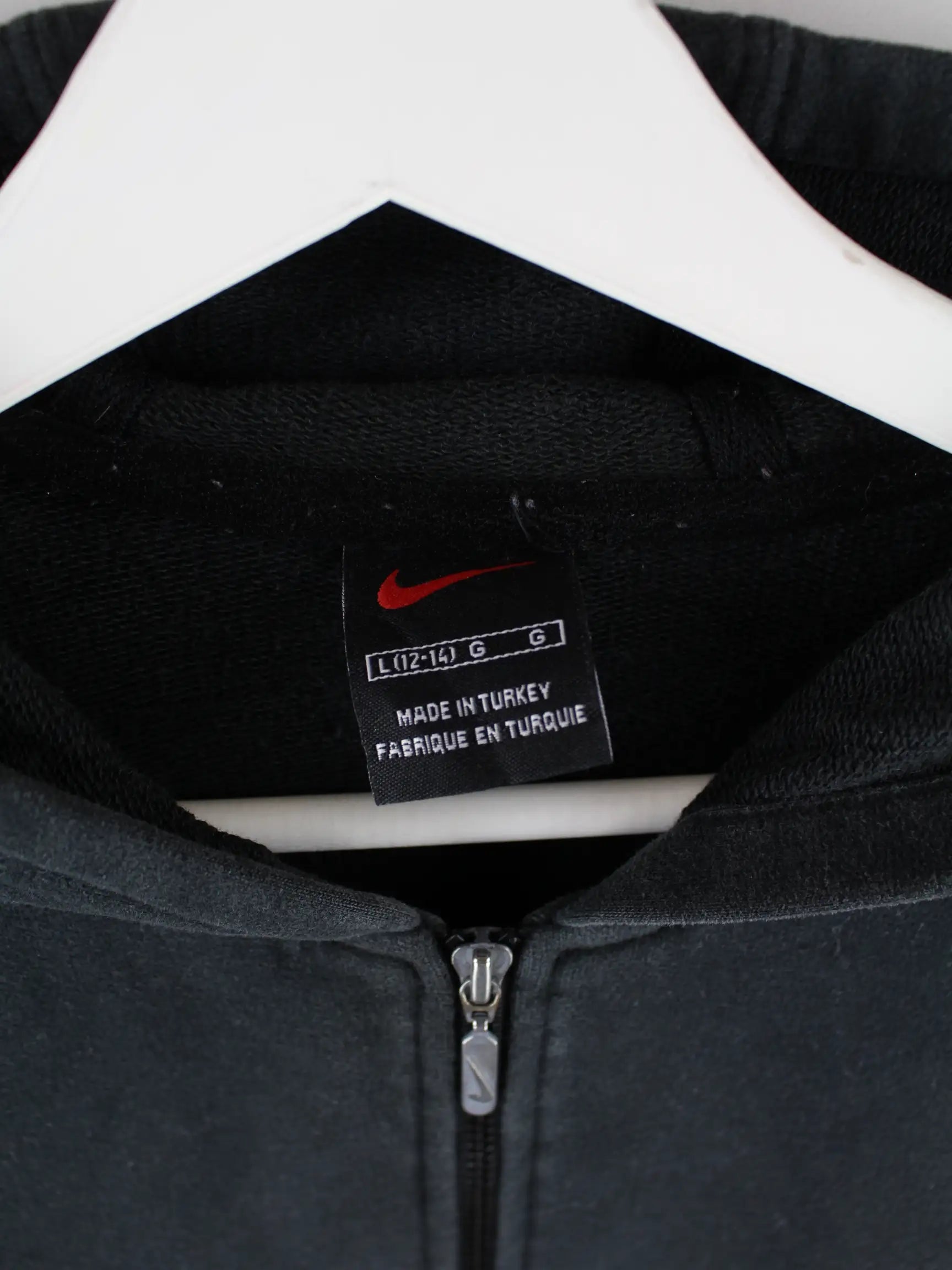 Schwarzer Hoodie mit Zip der Marke Nike in Größe L. Er ist aus einer Baumwollmischung . Den Zustand würden wir als 'In Ordnung' bezeichnen (vergl. Bilder).