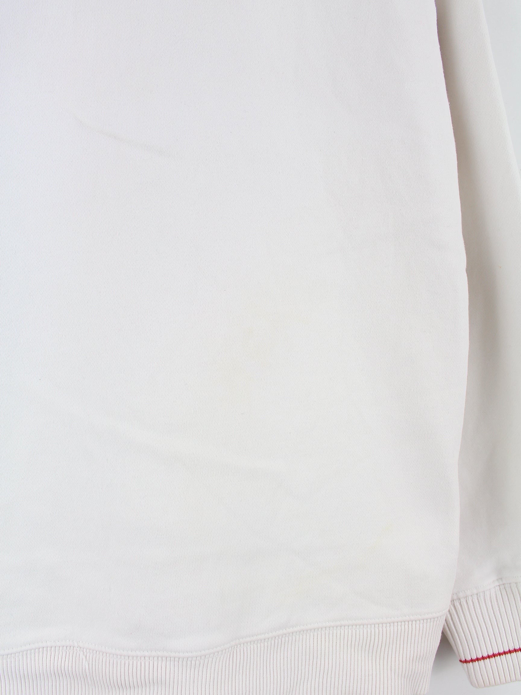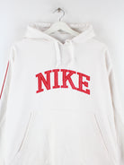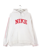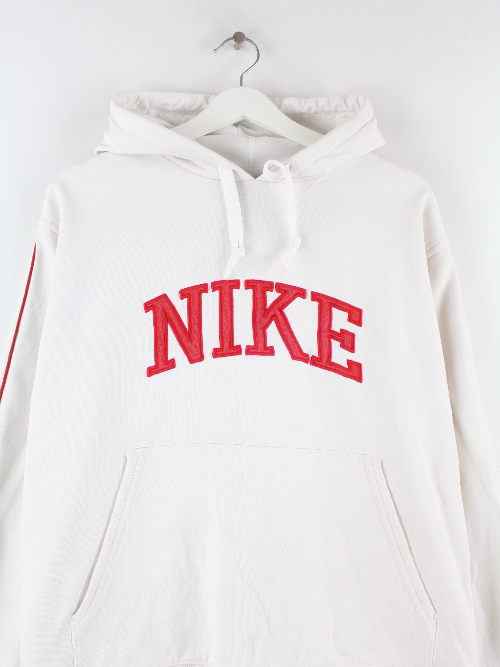 Hoodie von Nike mit gestickten Motiven in Größe L. Er ist aus einer Baumwollmischung gemacht und in Weiß zu haben.