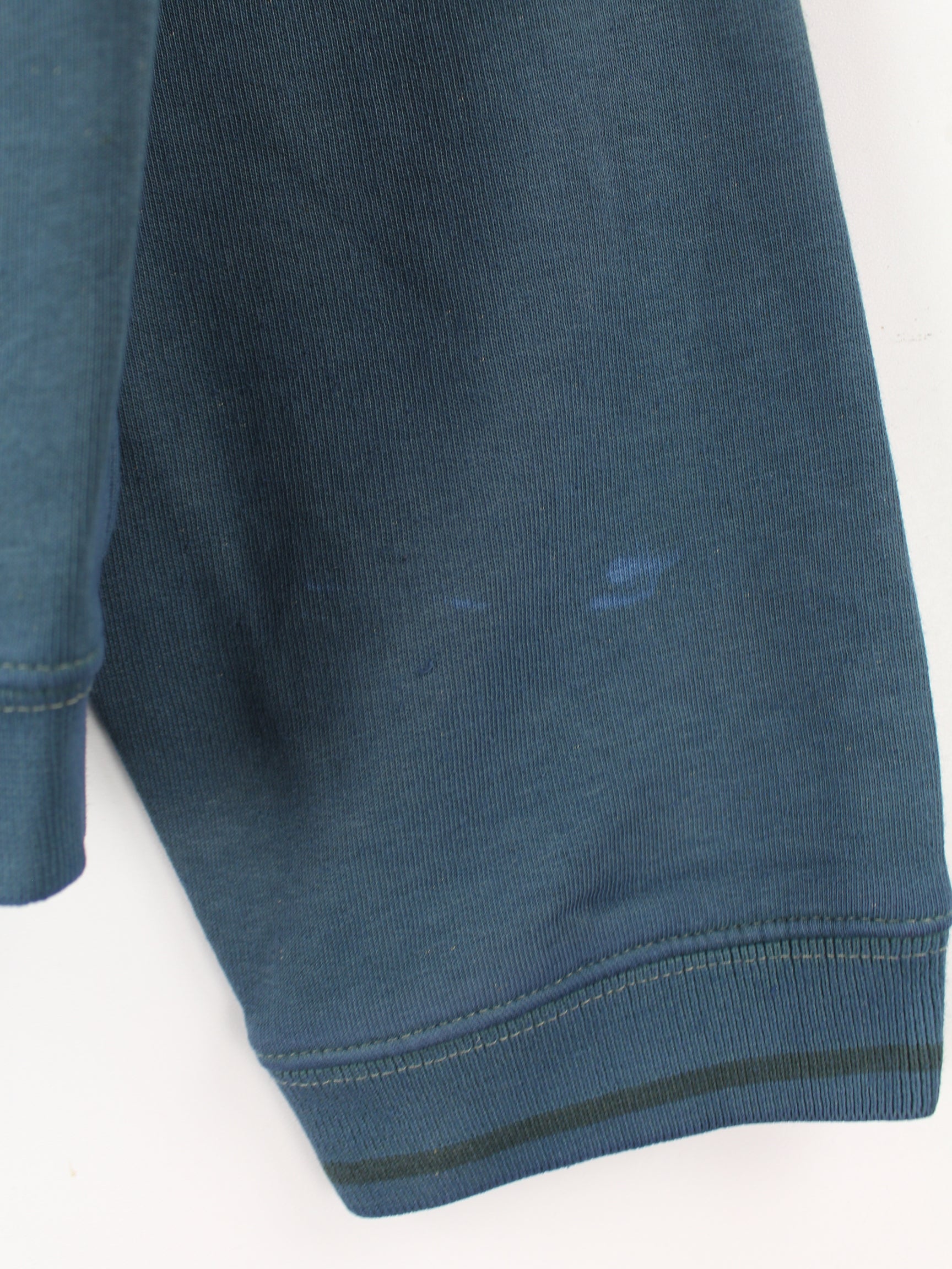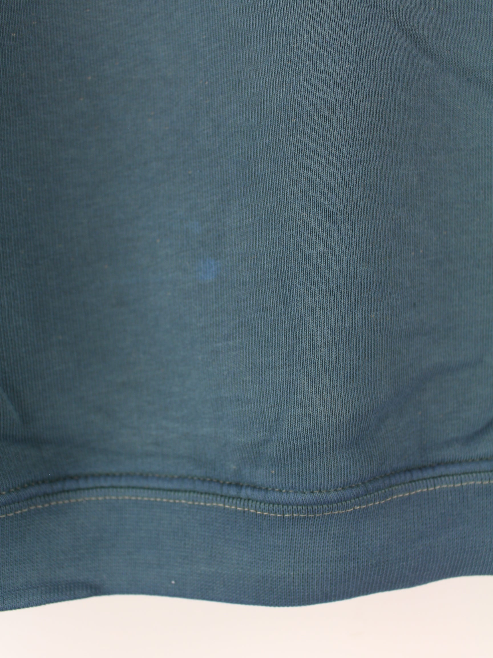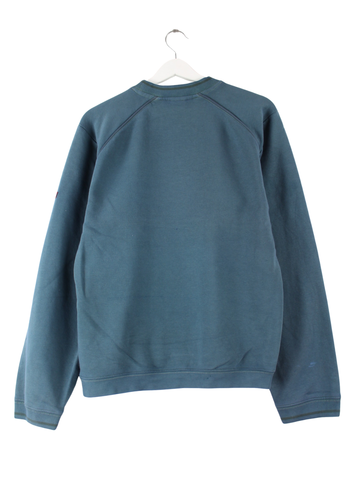 Blauer Sweater mit Stickereien vom Label Nike in Größe S. Er ist aus einer Baumwollmischung gefertigt und in gutem Zustand bei uns vorrätig.