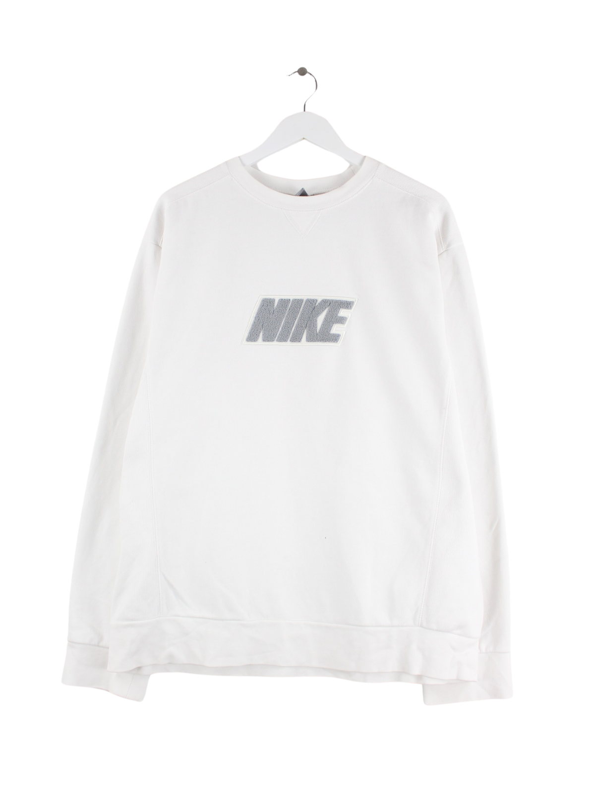 Sweater des Labels Nike mit gestickten Motiven in Größe L. Er ist aus einer Baumwollmischung gefertigt und in Weiß im Angebot.