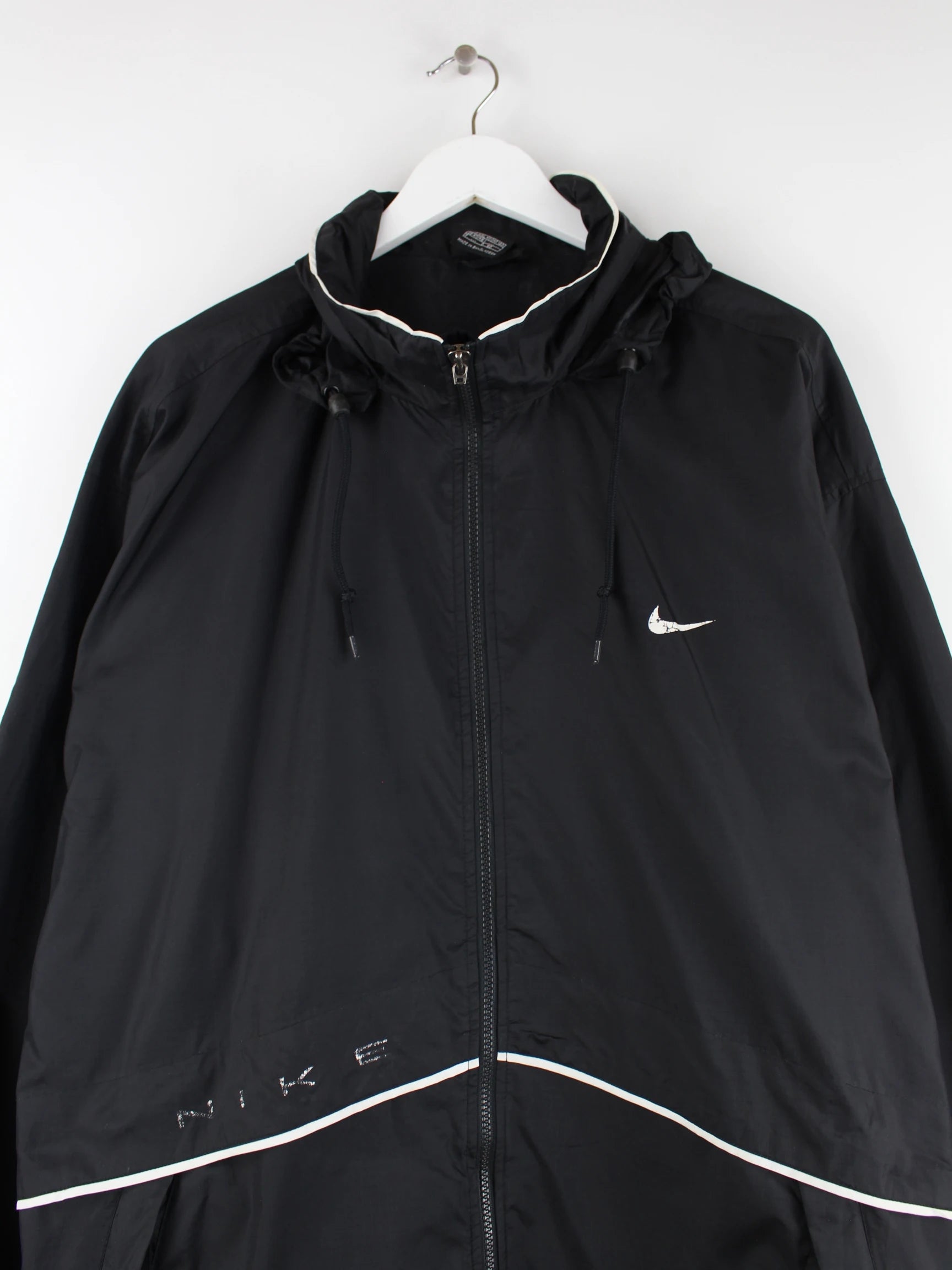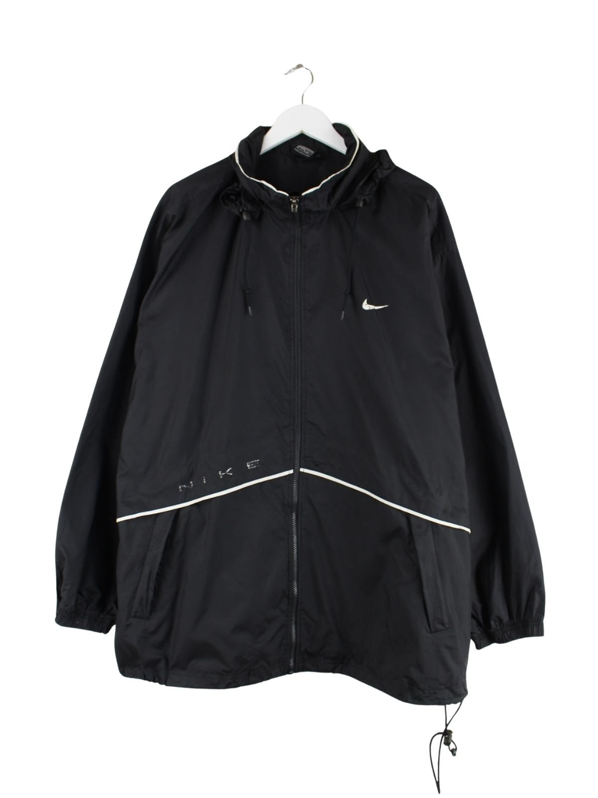 Leichte Jacke von Nike in Größe XXL. Sie ist aus Synthetik gemacht und in Schwarz in Stock. Mit chiquem Swoosh Print.