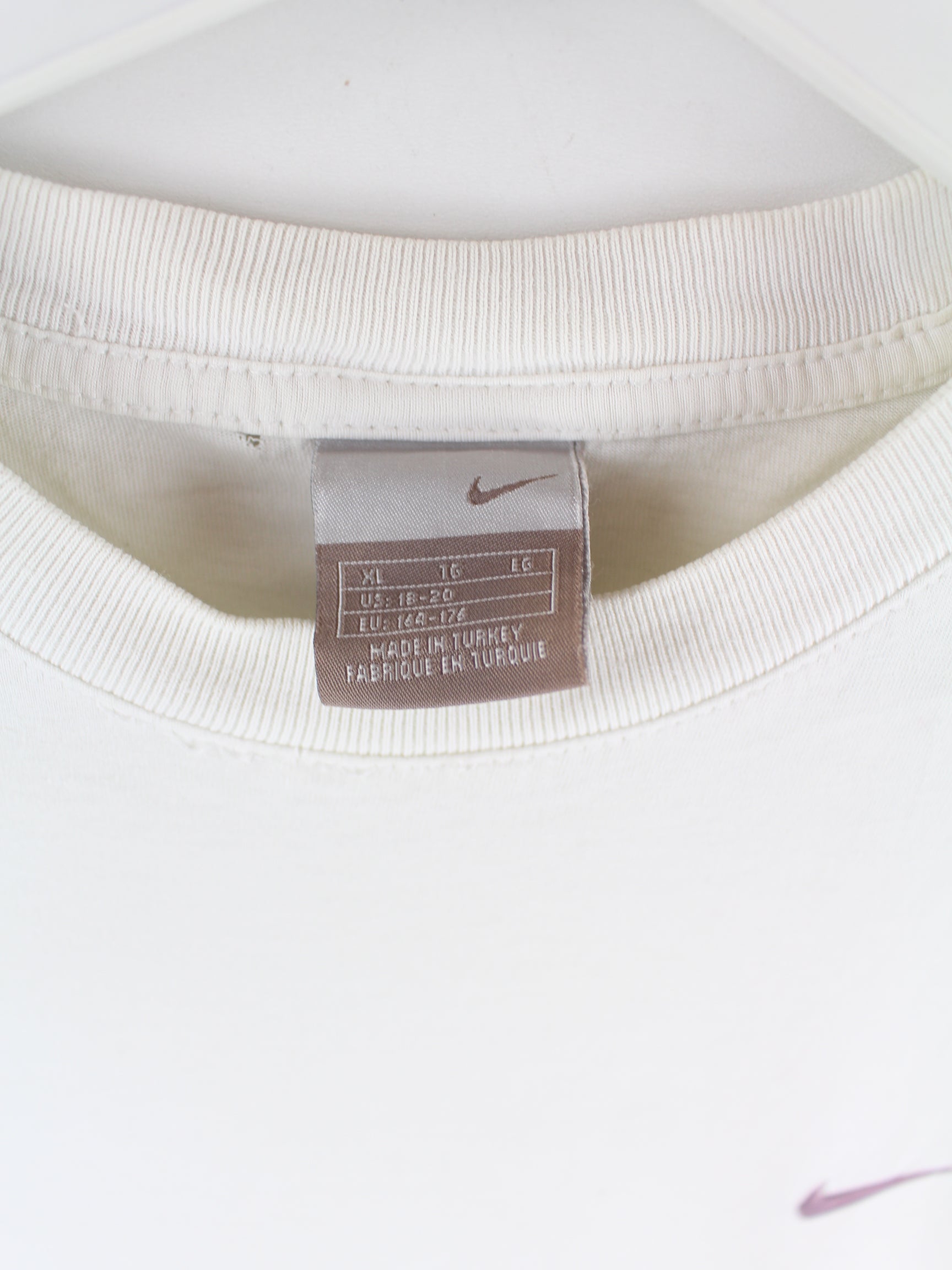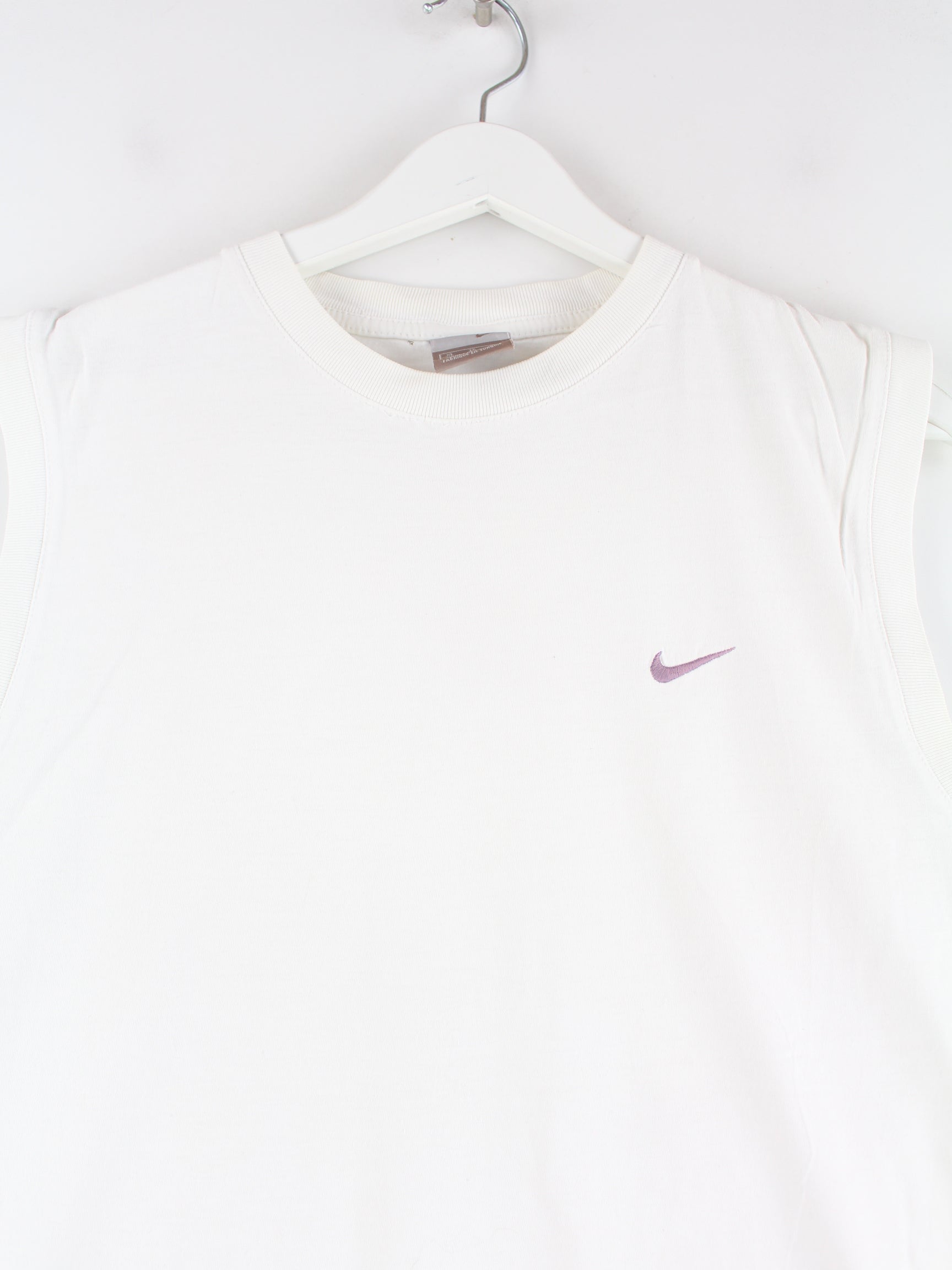 Weißer Tank Top der Marke Nike in Größe M. Er ist aus Baumwolle produziert und in gutem Zustand bei uns vorrätig.