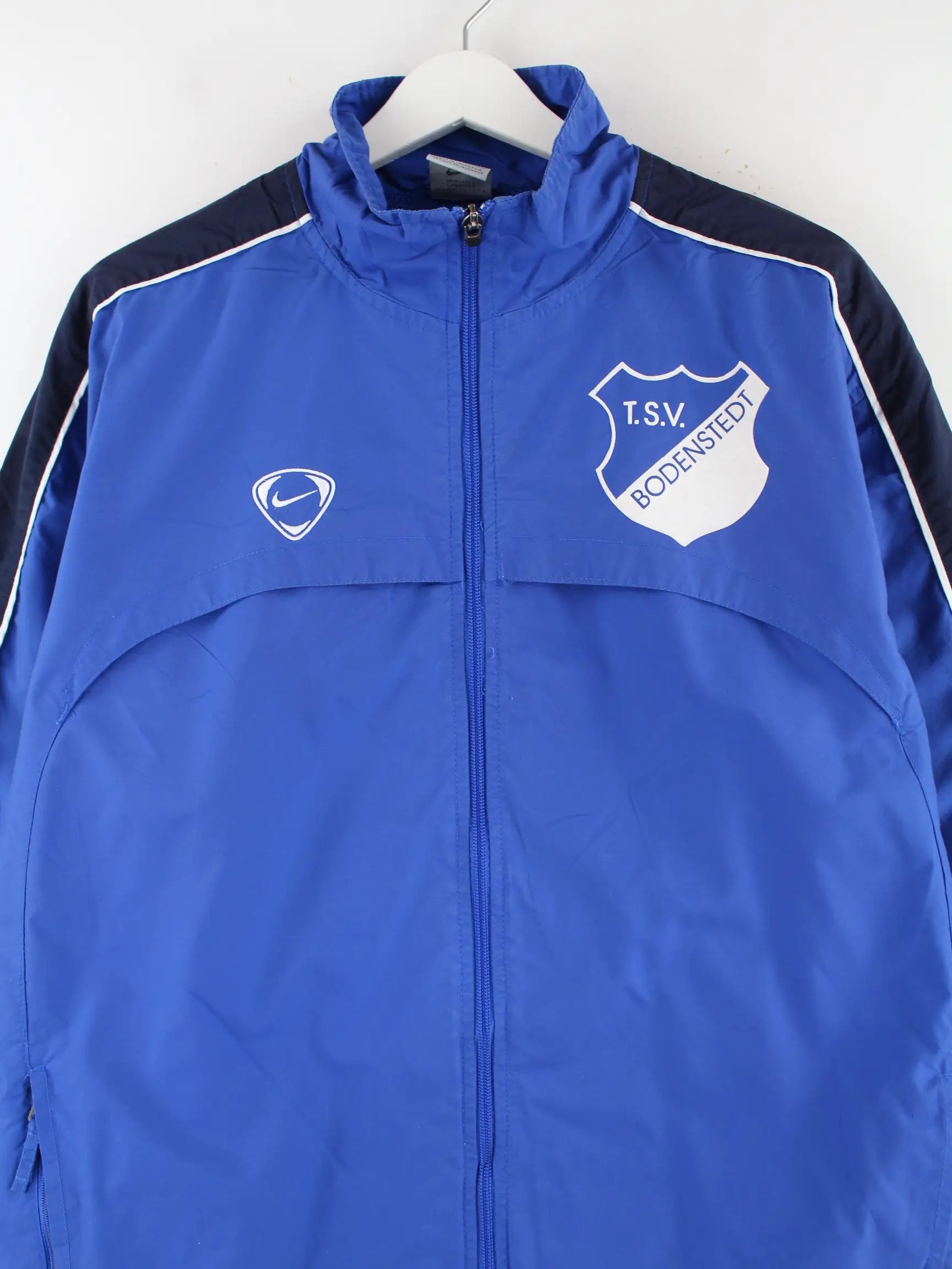 Blaue Trainingsjacke des Labels Nike in Größe L. Sie ist aus Synthetik hergestellt und in sehr gutem Zustand im Angebot. Mit tollem TSV Print.