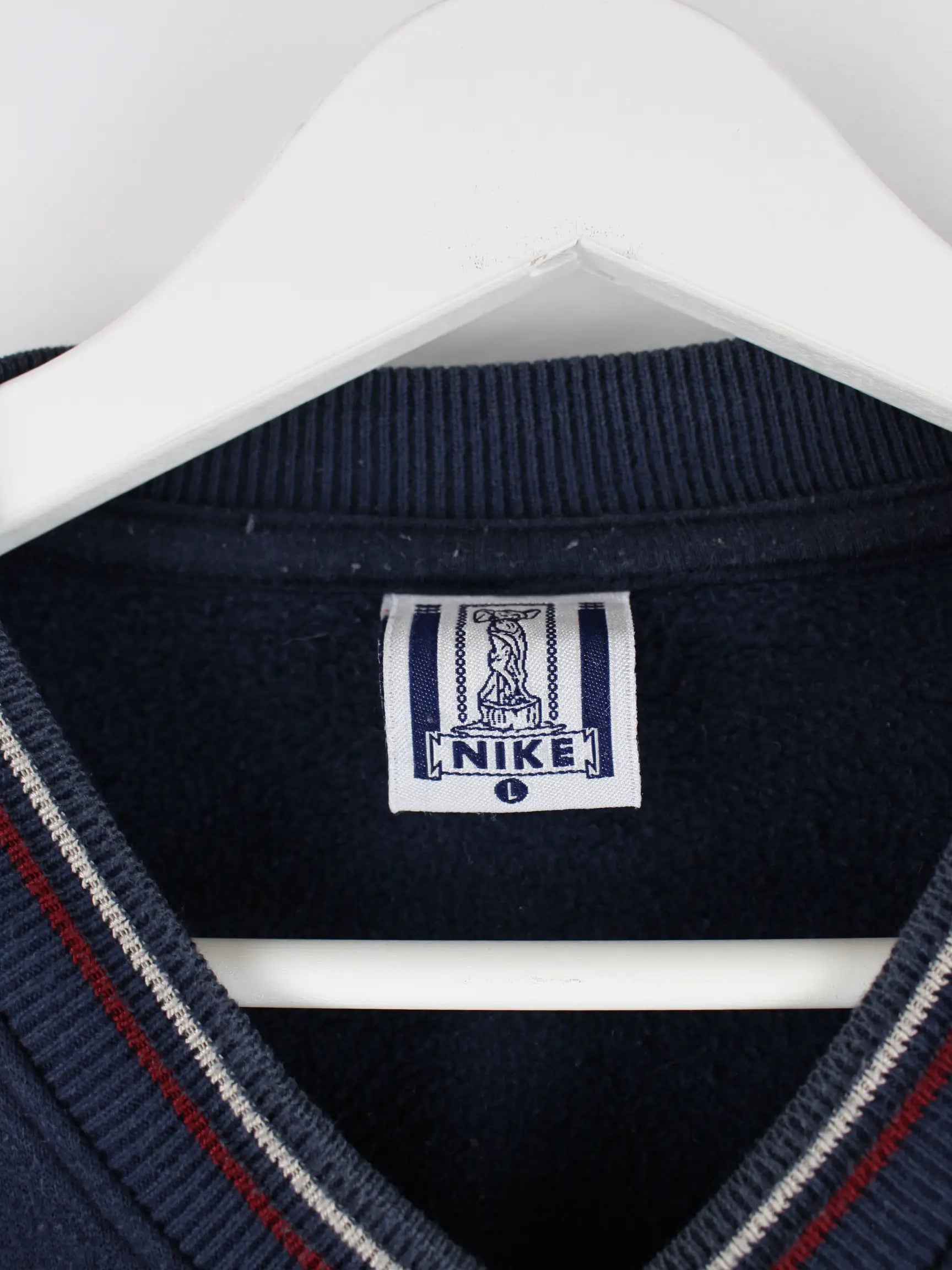 Blauer Sweater vom Brand Nike in Größe L. Er ist aus einer Baumwollmischung hergestellt und in sehr gutem Zustand im Bestand.