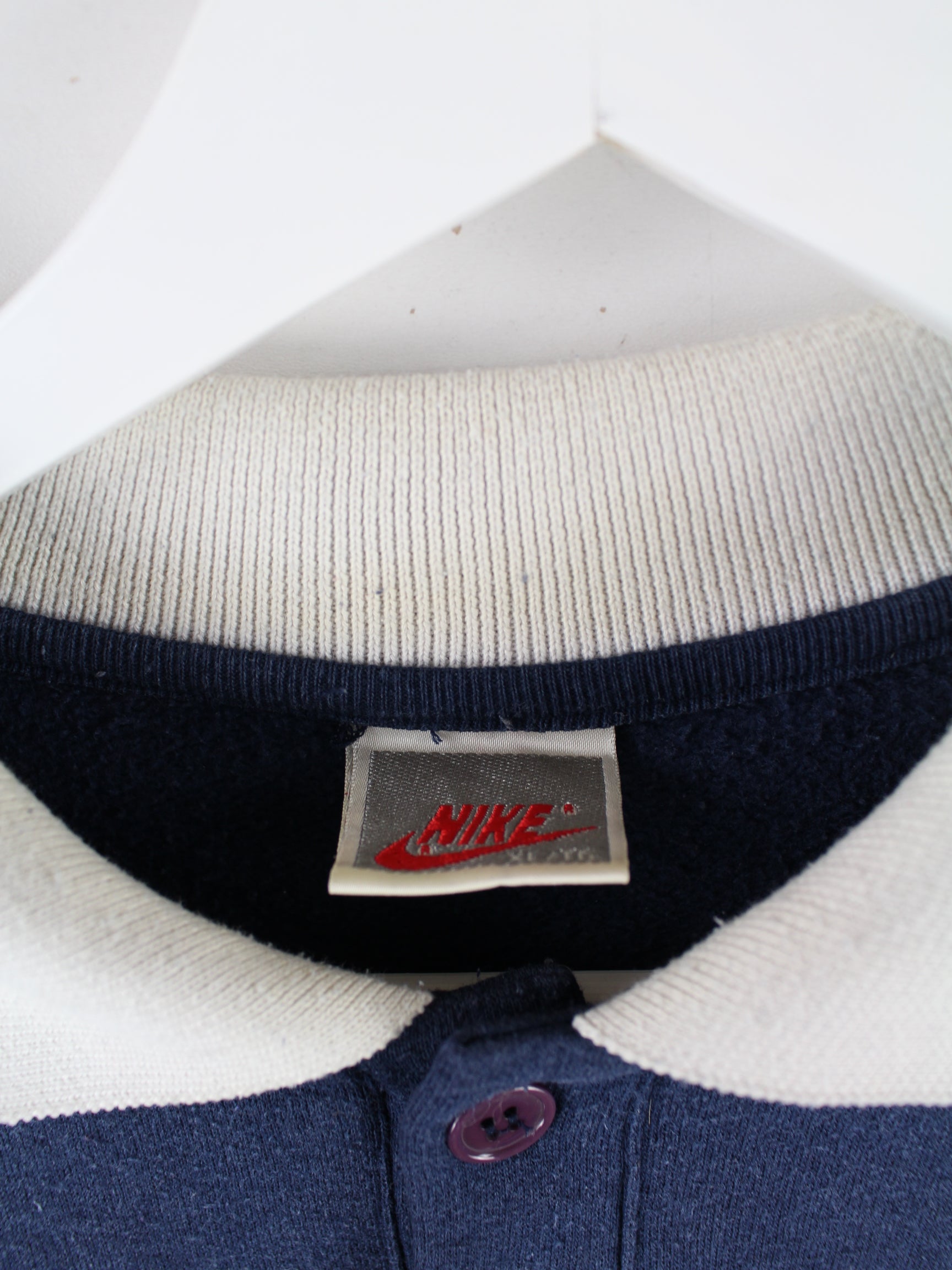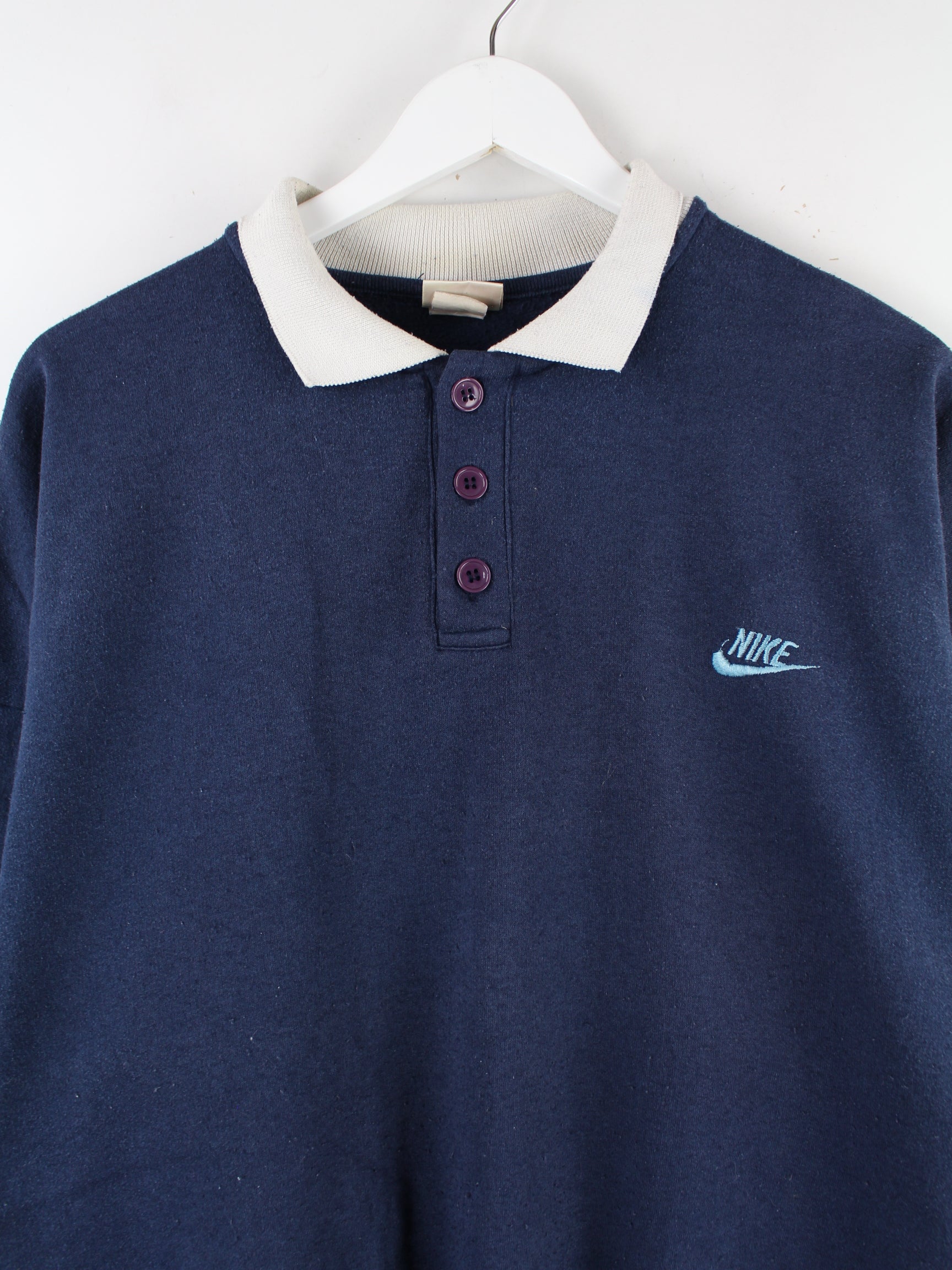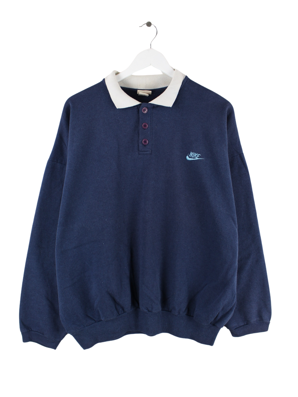 Sweater aus dem Hause Nike in Größe XL (fällt aus wie L) aus den 80'ern. Er ist aus einer Baumwollmischung gemacht und in Blau auf Lager.