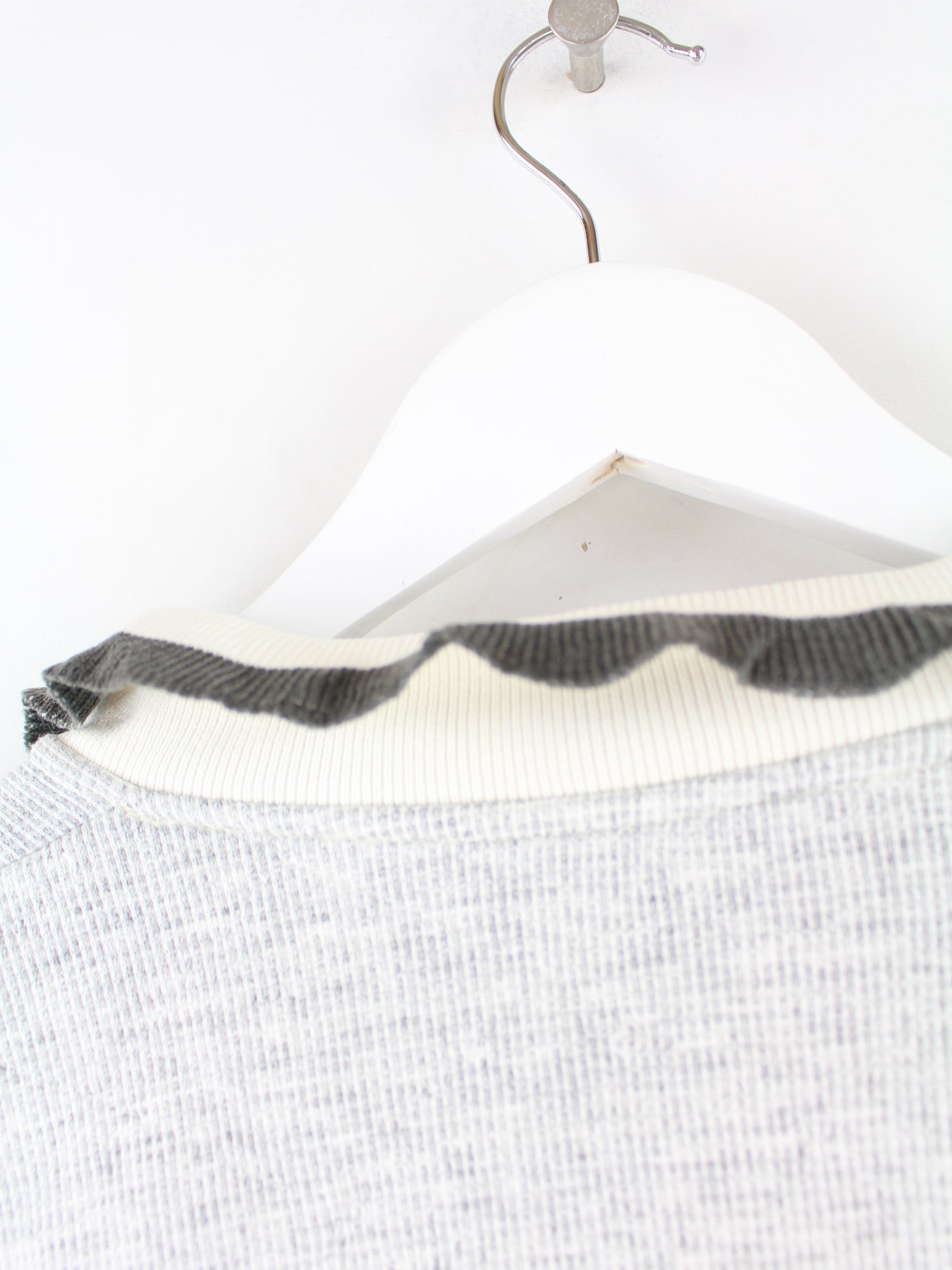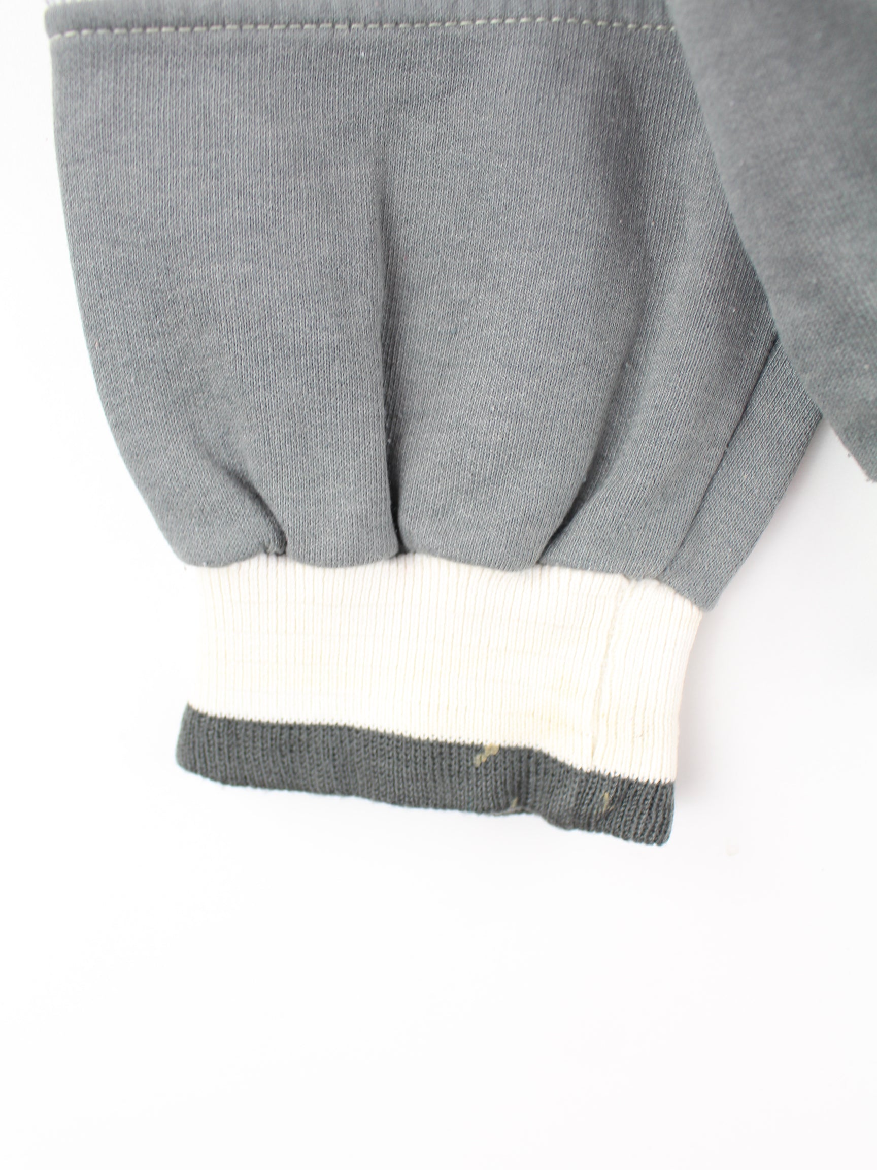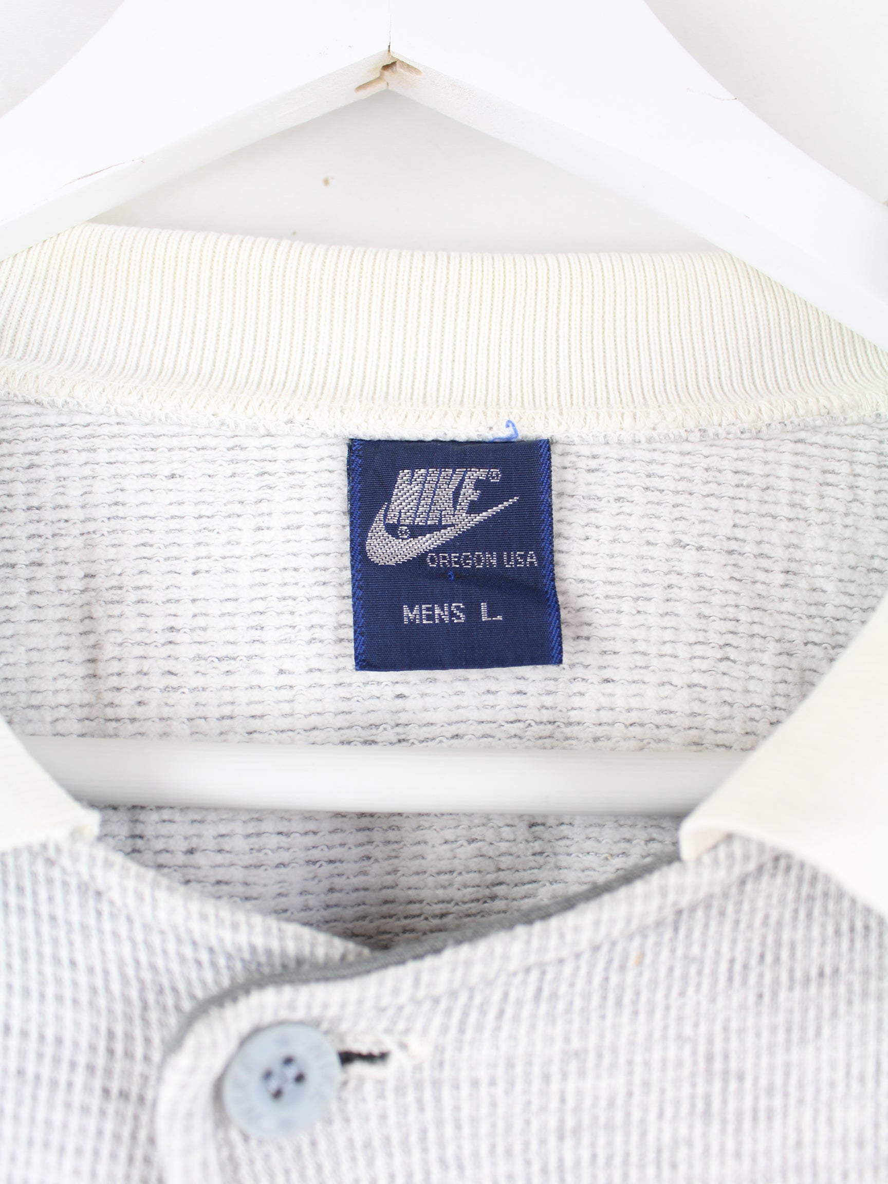 Grauer Sweater der Marke Nike aus den 80'ern in Größe L. Er ist aus einer Baumwollmischung produziert und in gutem Zustand im Angebot. Mit seltenem Rowing Print.