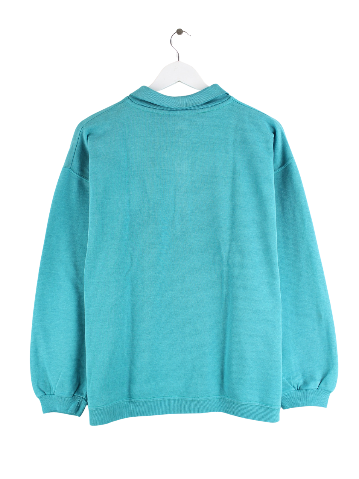 Türkisfarbener Sweater vom Brand Nike aus den 80'ern in Größe M. Er ist aus einer Baumwollmischung gemacht und in gutem Zustand bei uns zu bekommen.