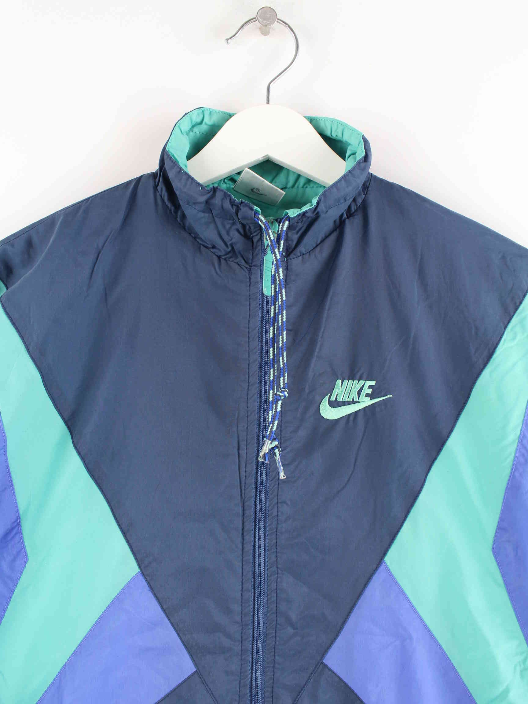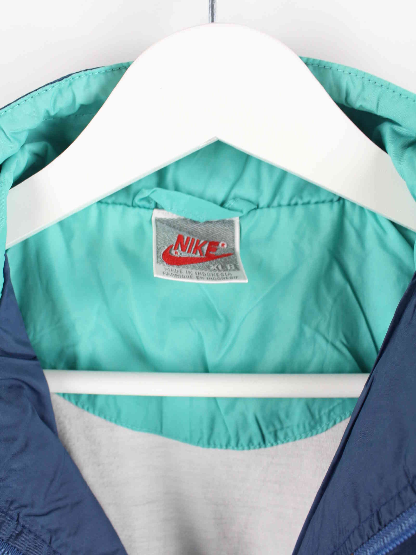 Trainingsjacke vom Label Nike in Größe S aus den 80'ern. Sie ist aus Synthetik gefertigt und in Blau auf Lager.