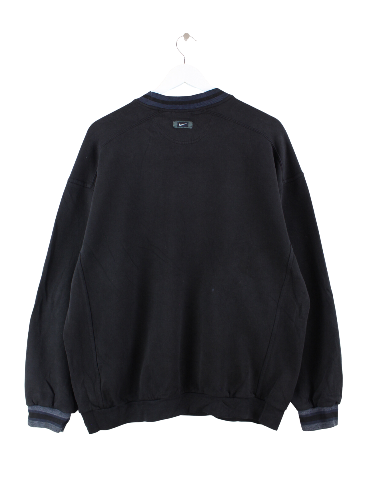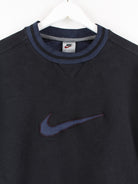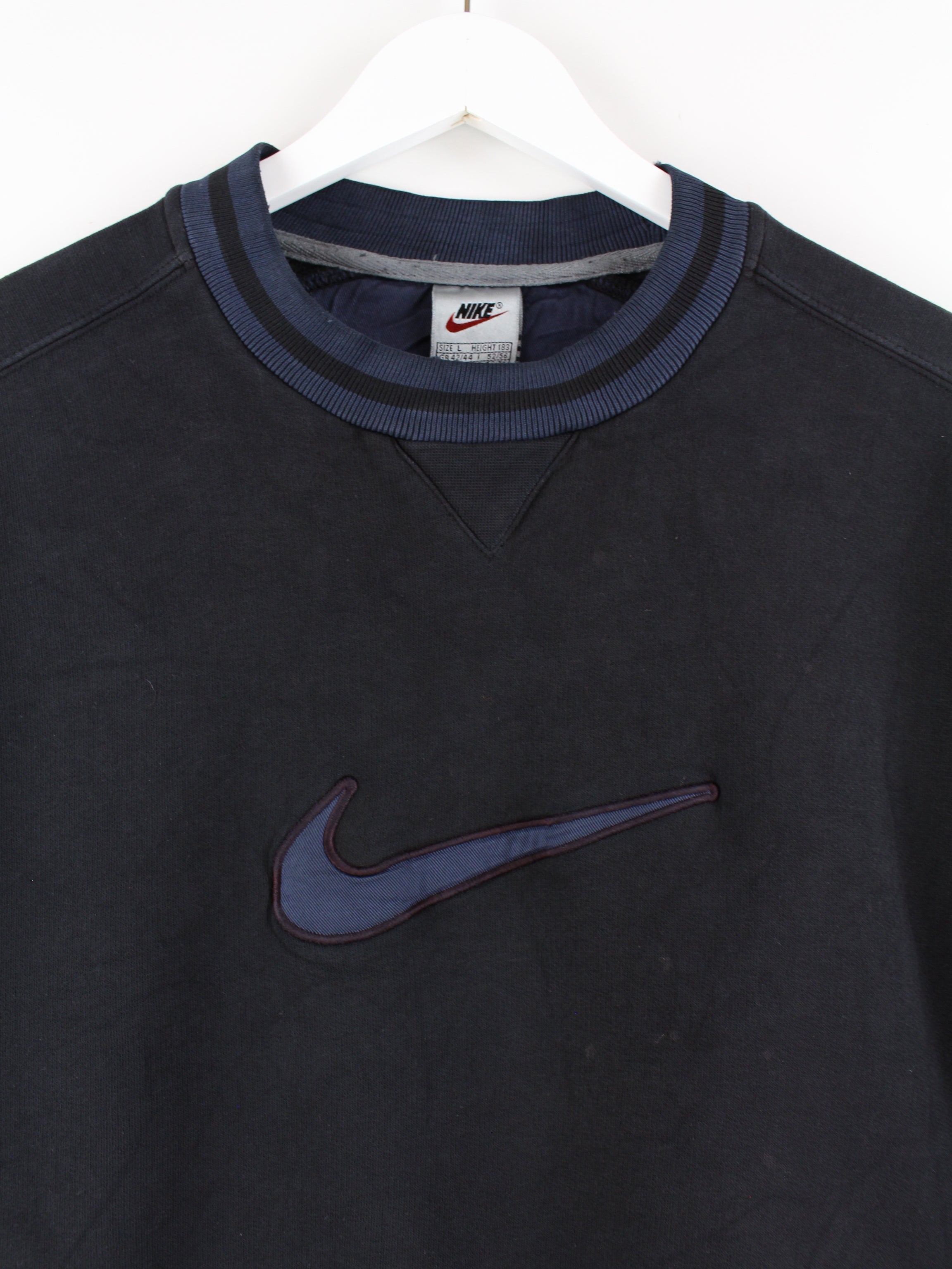 Schwarzer Vintage Nike Big Swoosh Sweater mit aufgesticktem Logo aus den 90er Jahren.