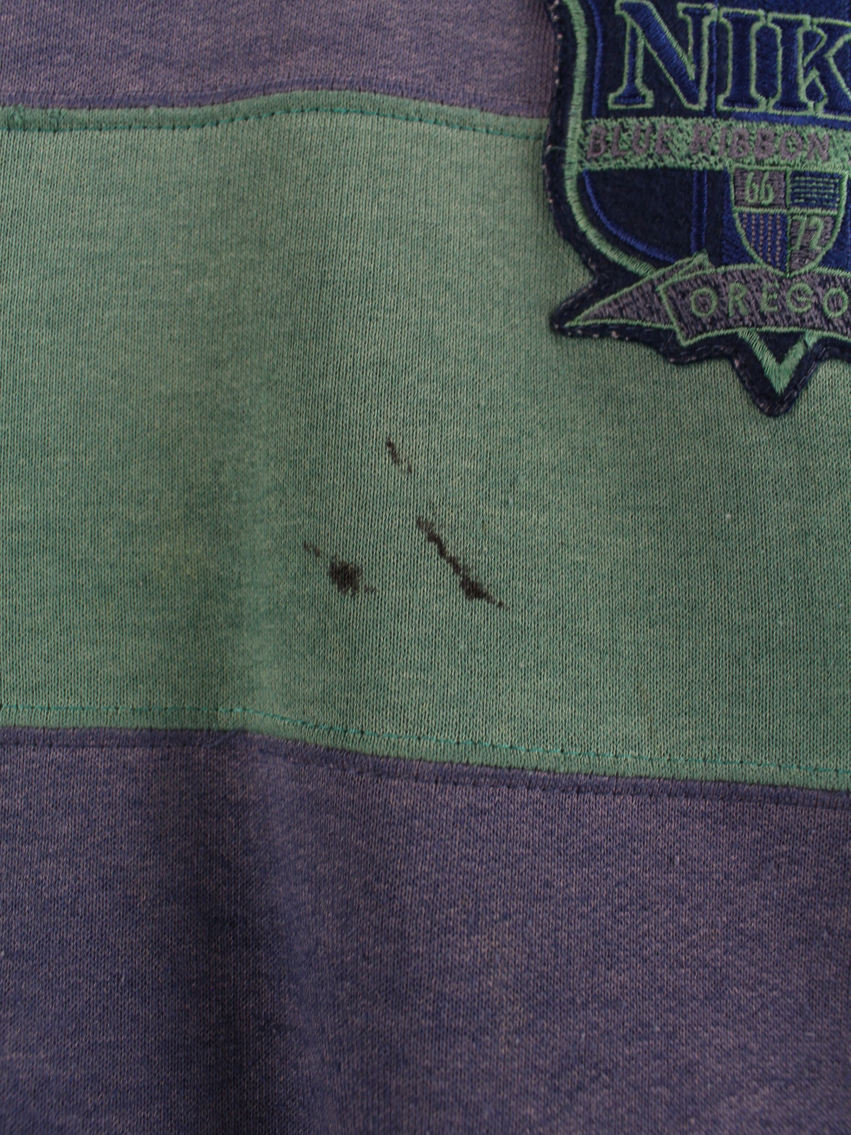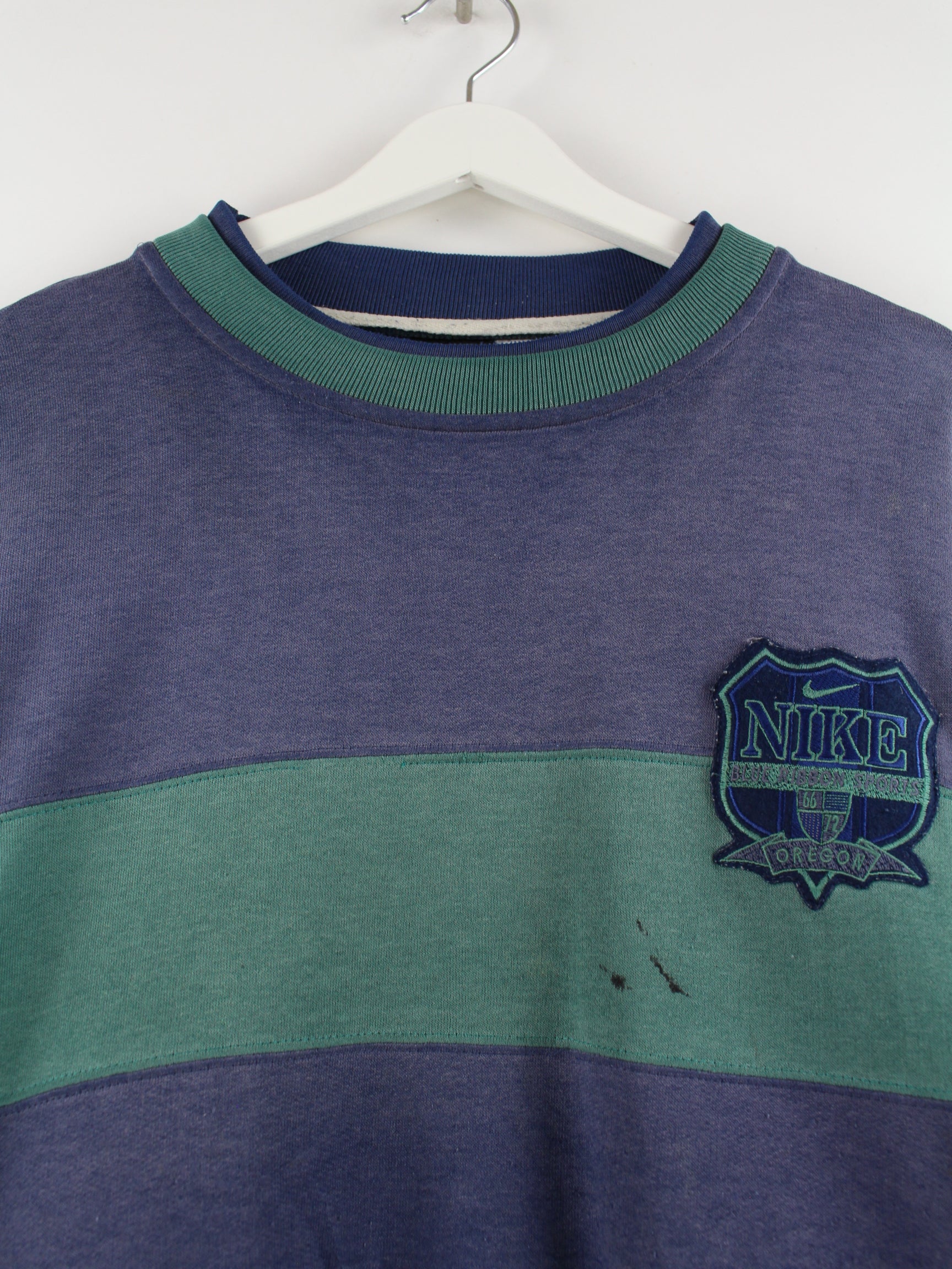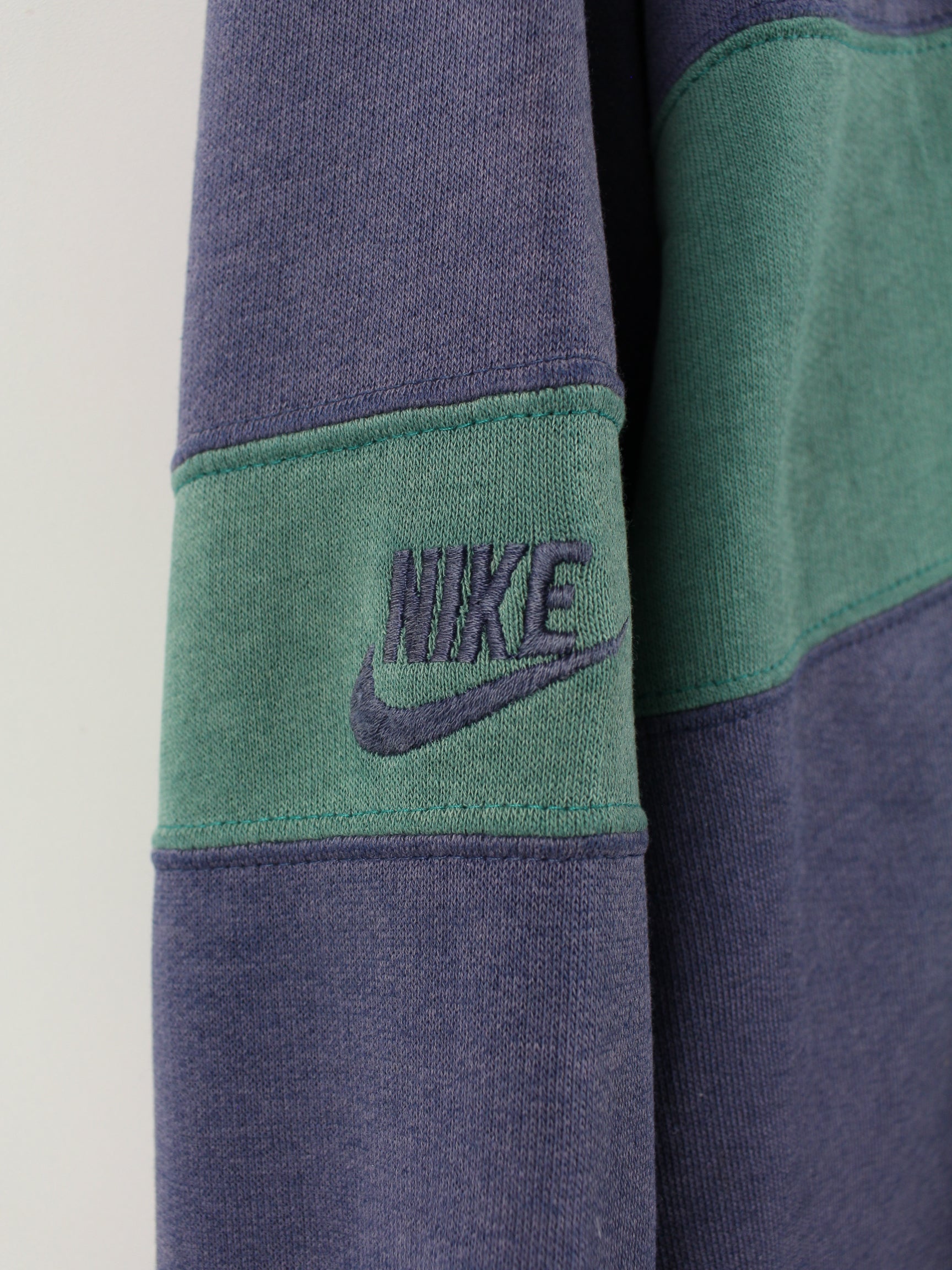 Blaugrüner Vintage Nike Sweater aus den 90er Jahren mit aufgesticktem Logo.