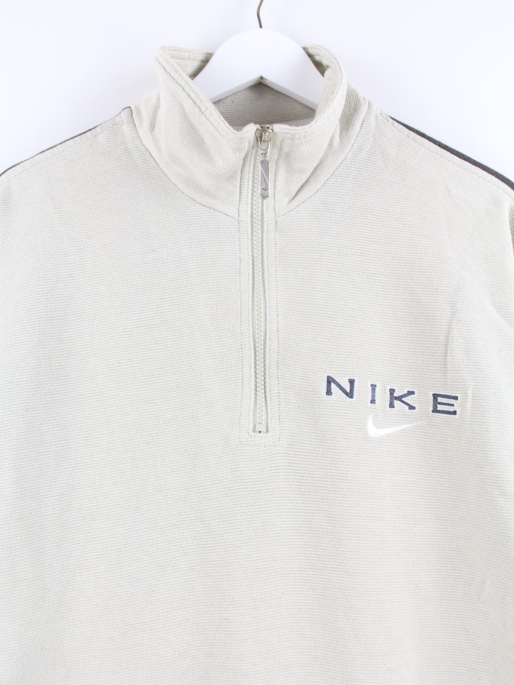 Nike 90s Half Zip Embroidered Sweater Beige L