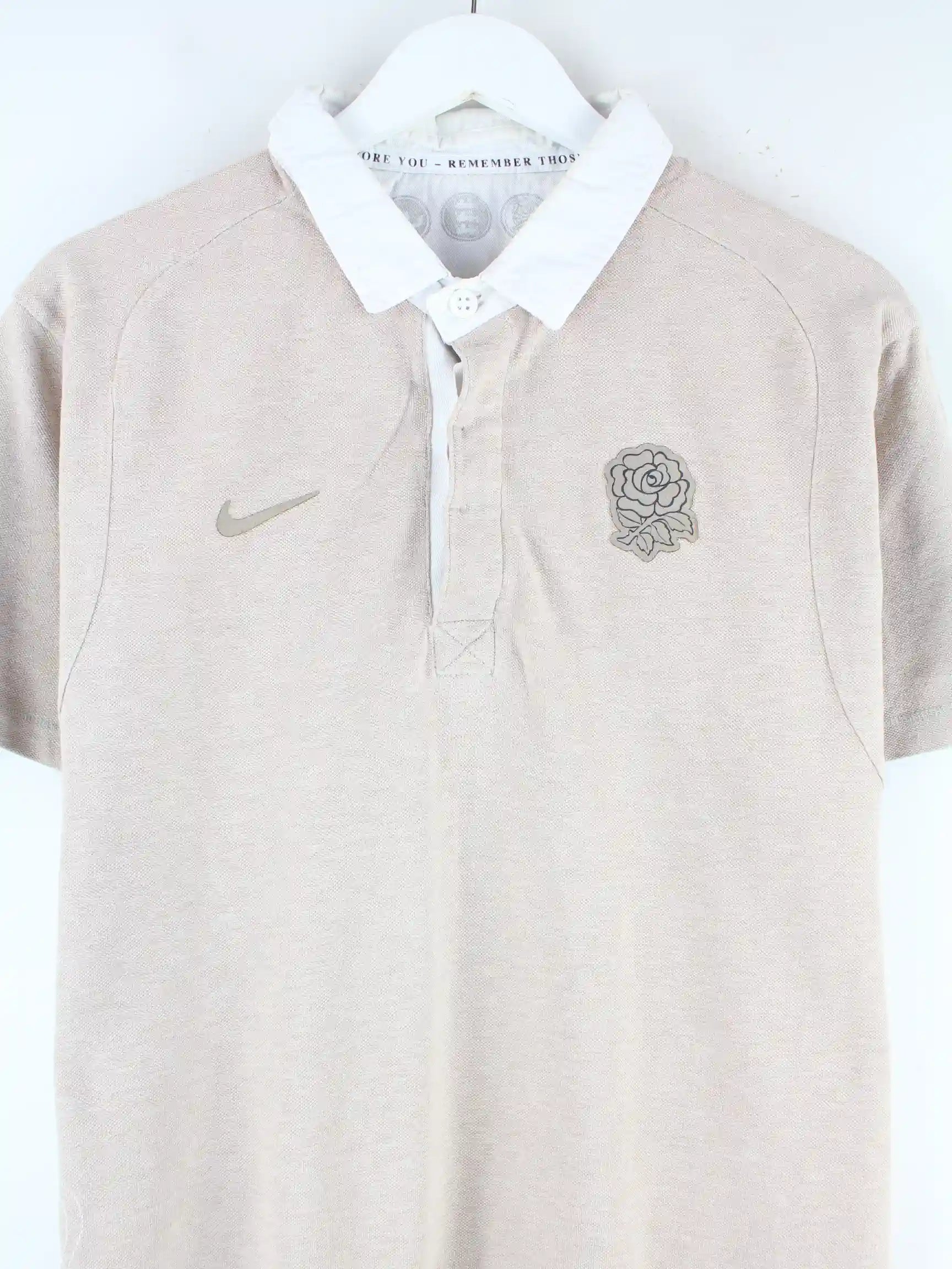 Beigefarbenes Poloshirt vom Brand Nike in Größe L. Es ist aus Baumwolle gefertigt und in sehr gutem Zustand in Stock.