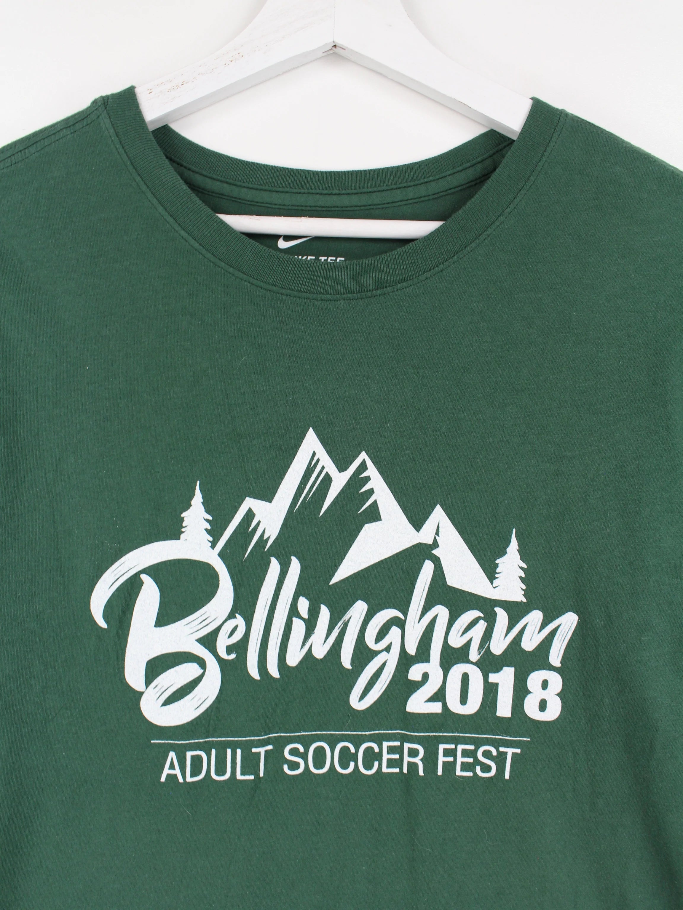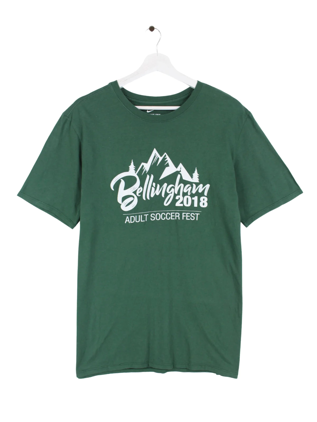 T-shirt Nike vert avec virgule centrale.
