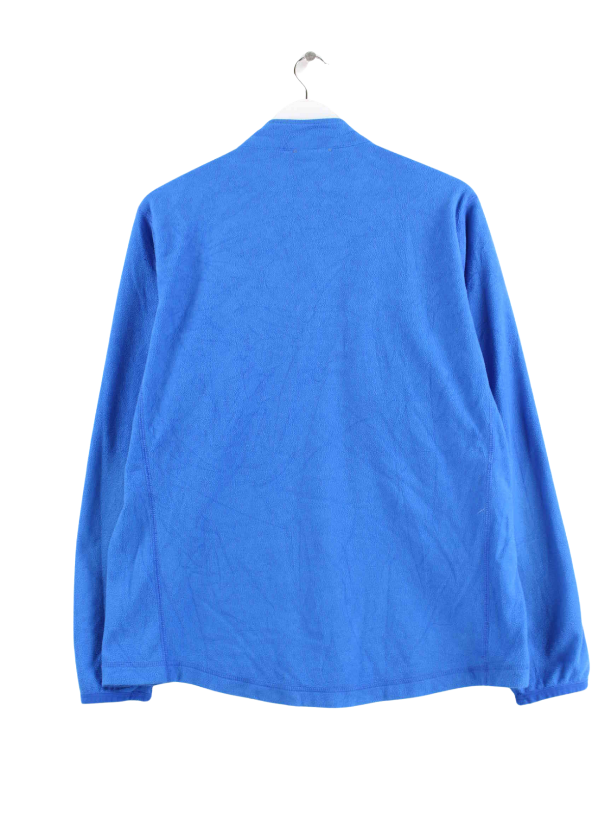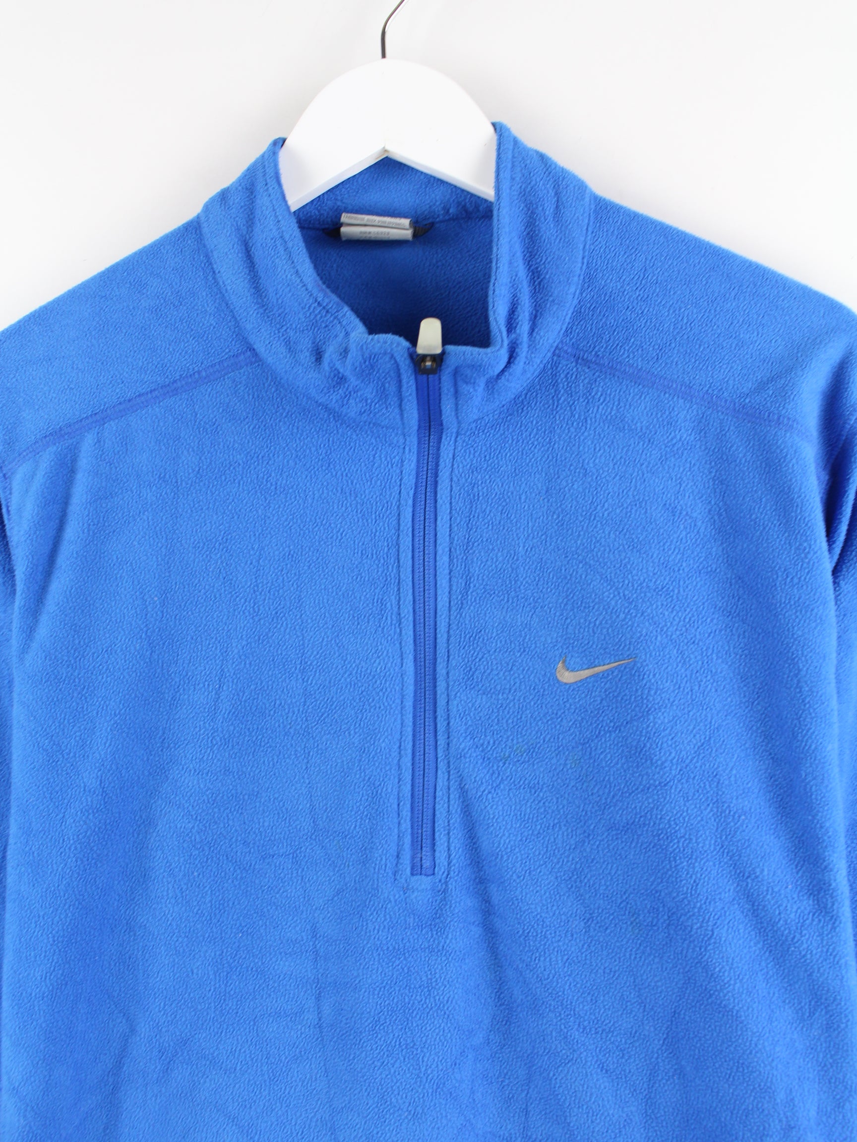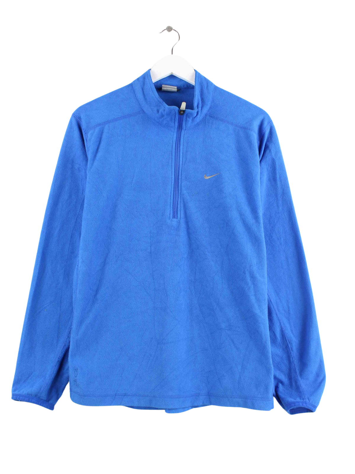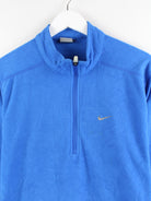 Sweater der Marke Nike mit half Zip in Größe L. Er ist aus weichem Fleece und in Blau on Stock.