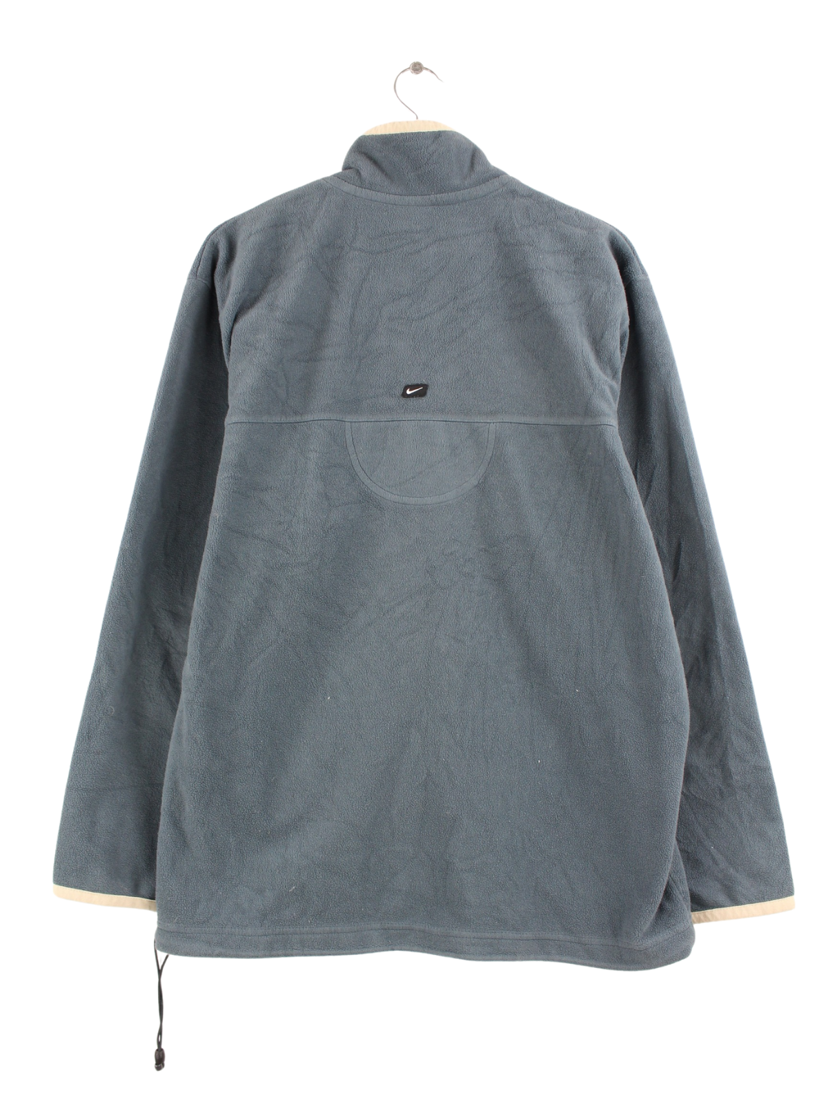 Khakifarbene Sweatjacke vom Brand Nike aus Anfang der 2000'er in Größe L. Sie ist aus gemütlichem Fleece produziert und in sehr gutem Zustand bei uns zu bekommen.