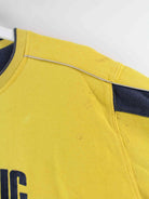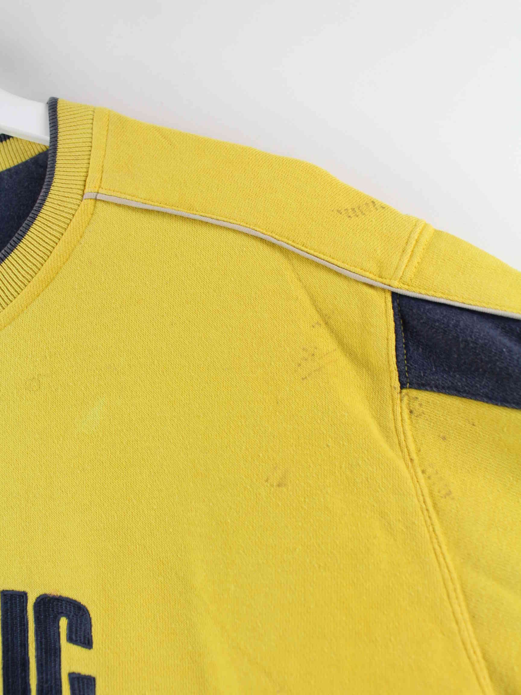 Sweater des Labels Nike mit gestickten Motiven in Größe M aus Anfang der 2000'er. Er ist aus einer Baumwollmischung produziert und in Gelb bei uns vorrätig.