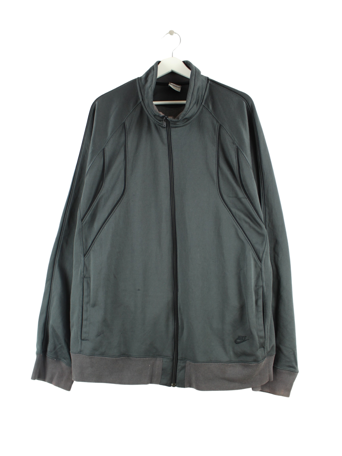 Trainingsjacke der Brand Nike in Größe XXL aus Anfang der 2000'er. Sie ist aus einer Baumwollmischung angefertigt und in Grau bei uns vorrätig.