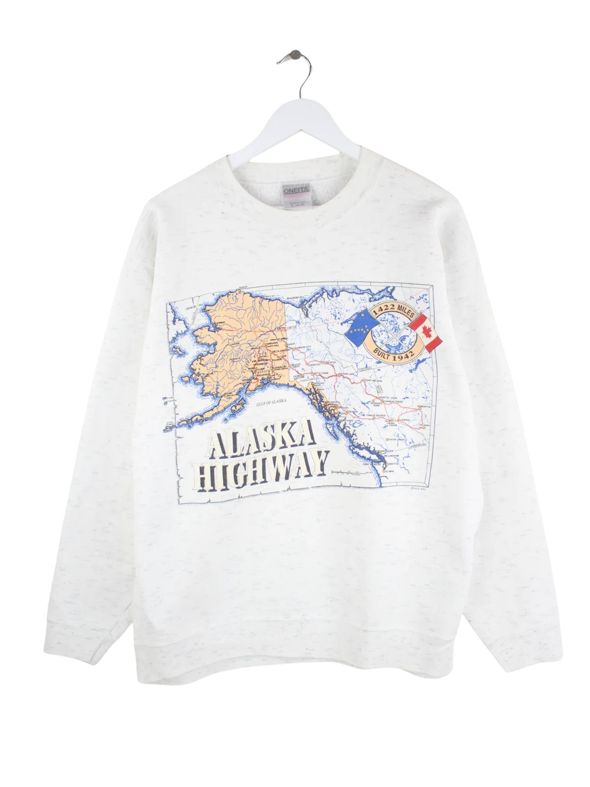 Oneita 90s Vintage Alaska Highway Print Sweater Grau XL