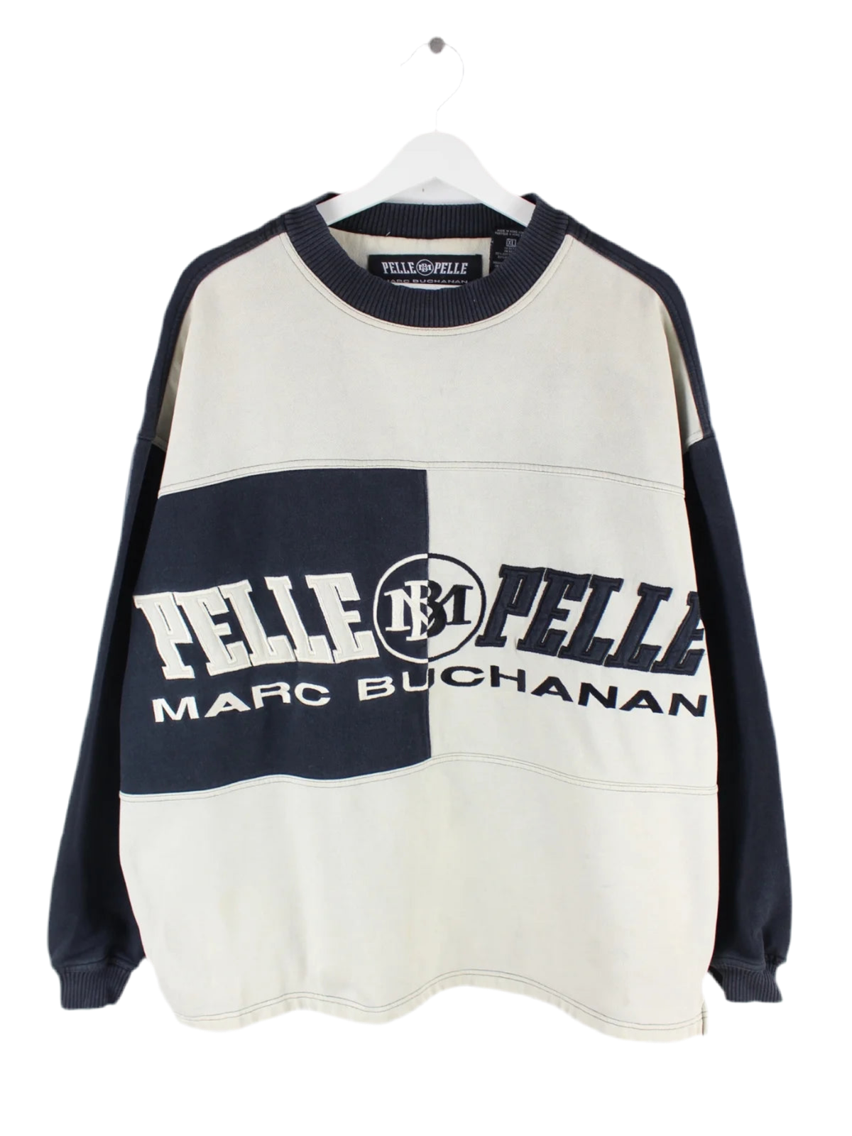 Grauer Sweater mit gesticktem Logo vom Label Pelle Pelle aus Anfang der 2000'er in Größe XL. Er ist aus einer Baumwollmischung gemacht und in gutem Zustand im Bestand.
