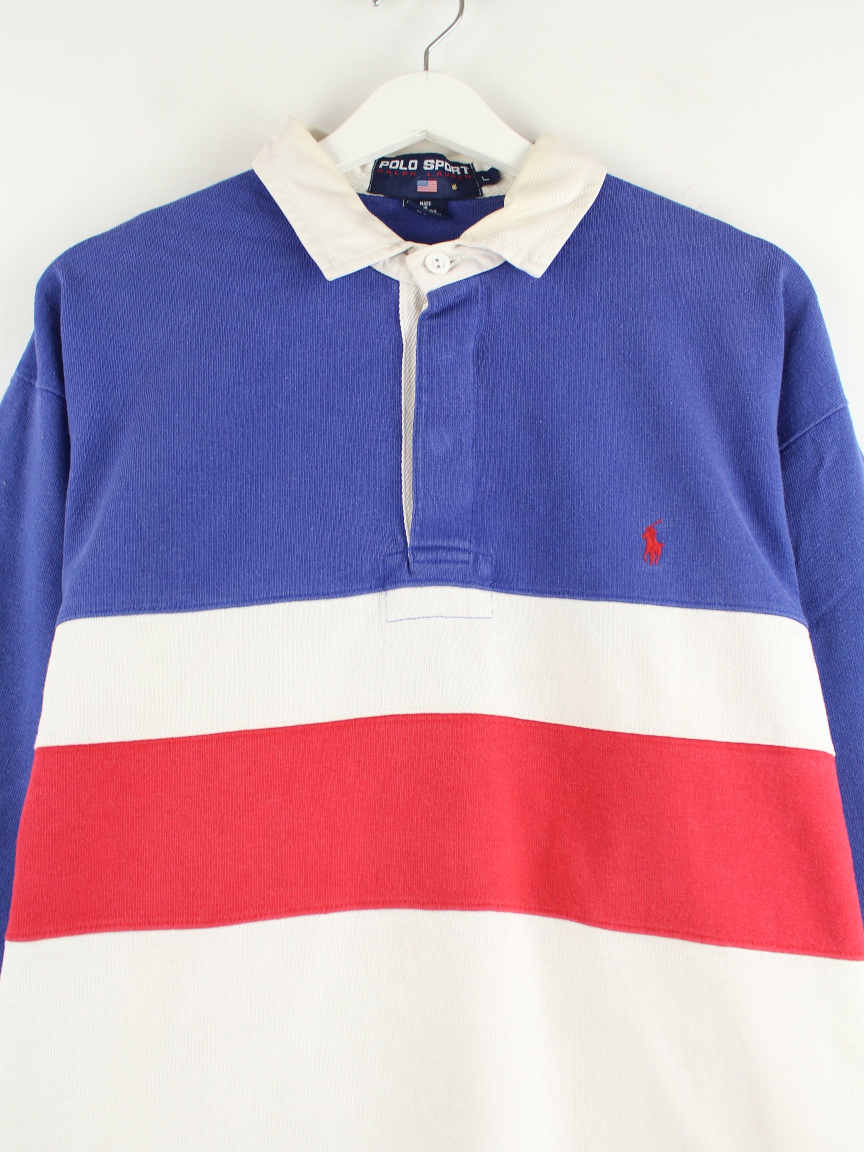 Ralph Lauren Polo Sport 90s Vintage Langarm Polo Blau / Weiß L
