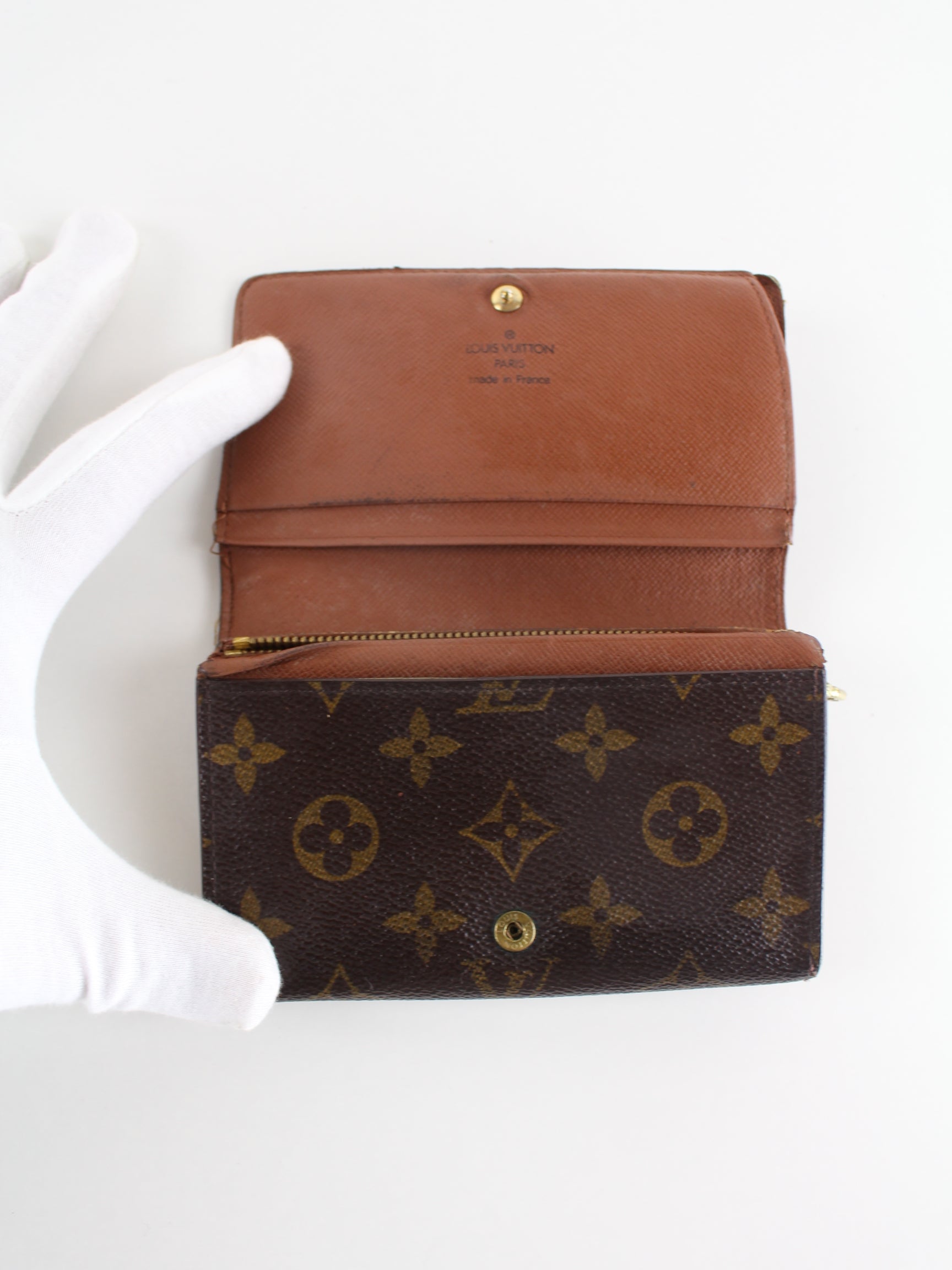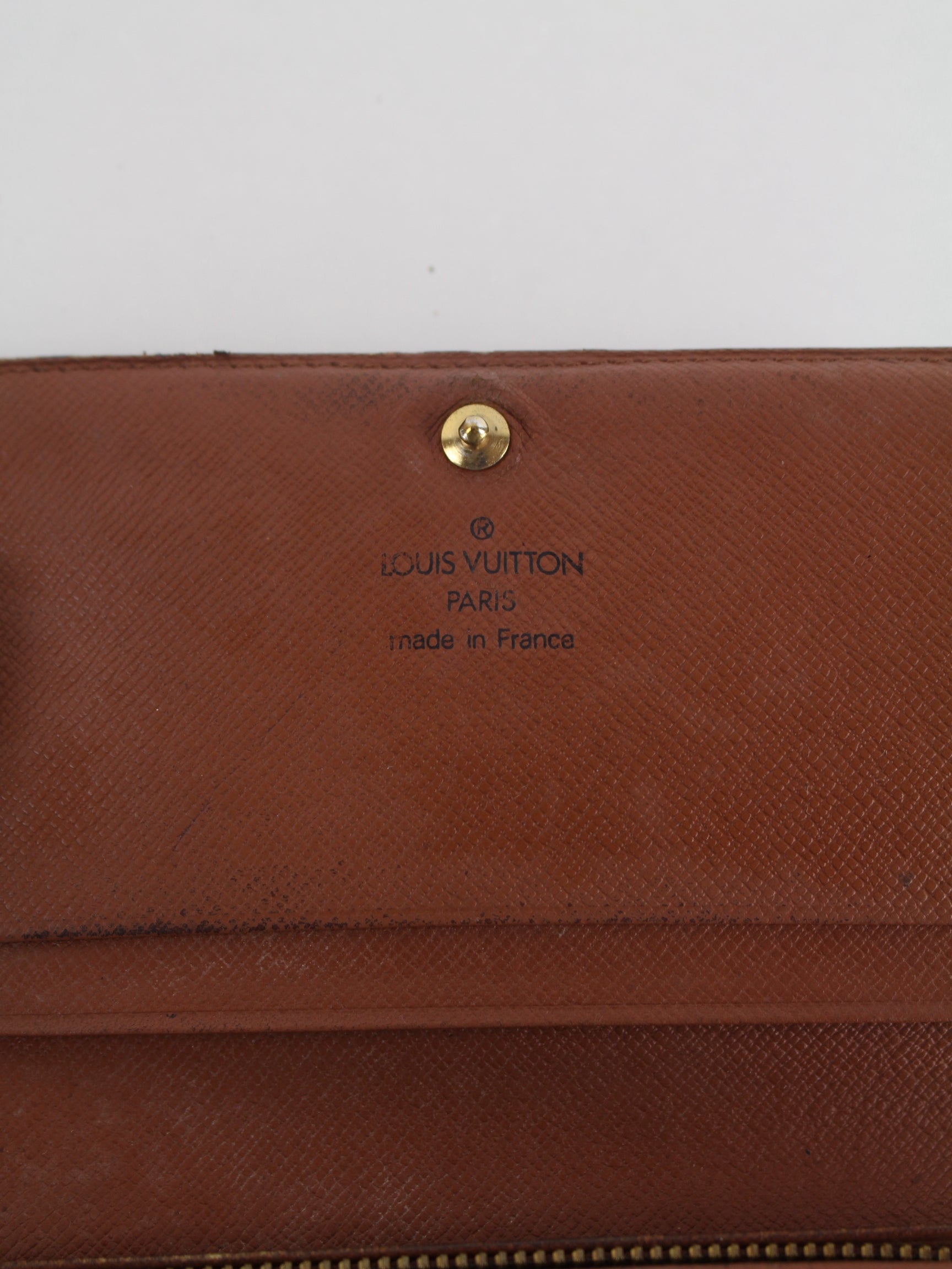 Vintage Louis Vuitton Damen Monogramm Portemonnaie aus braunem Leder.