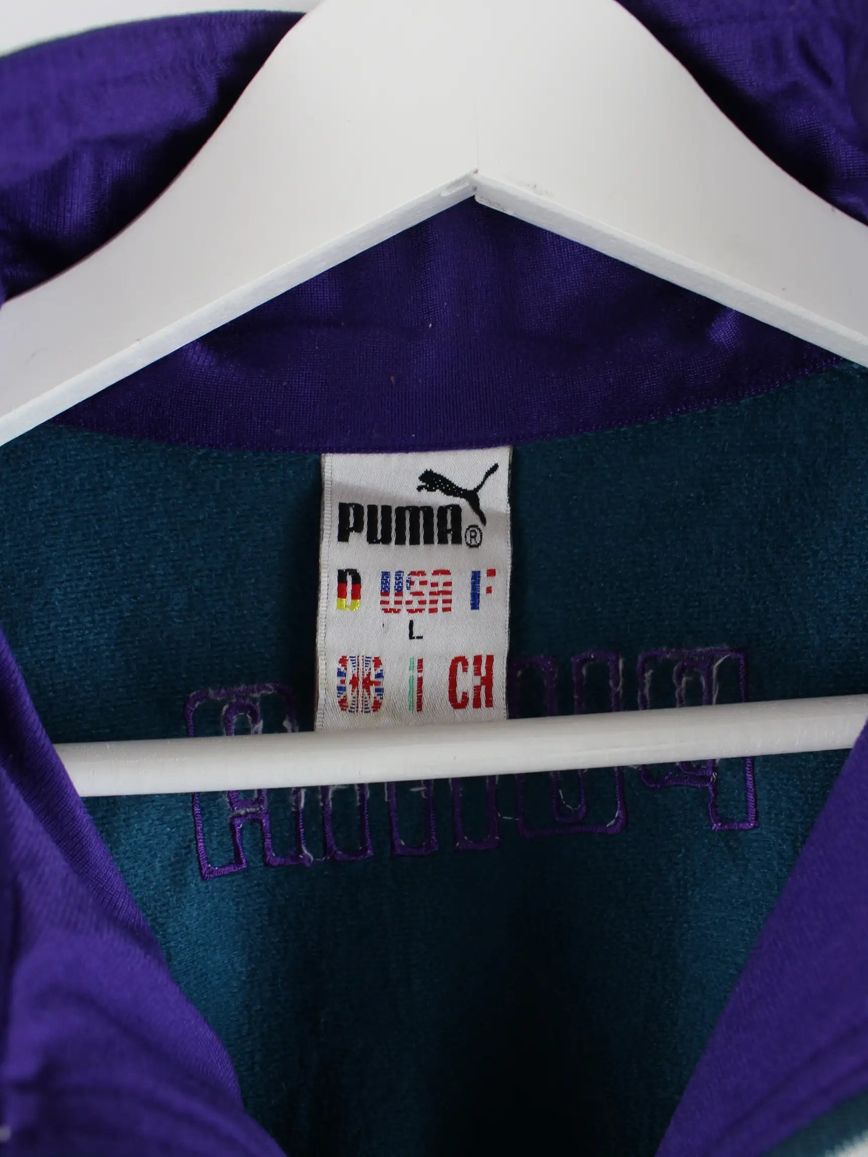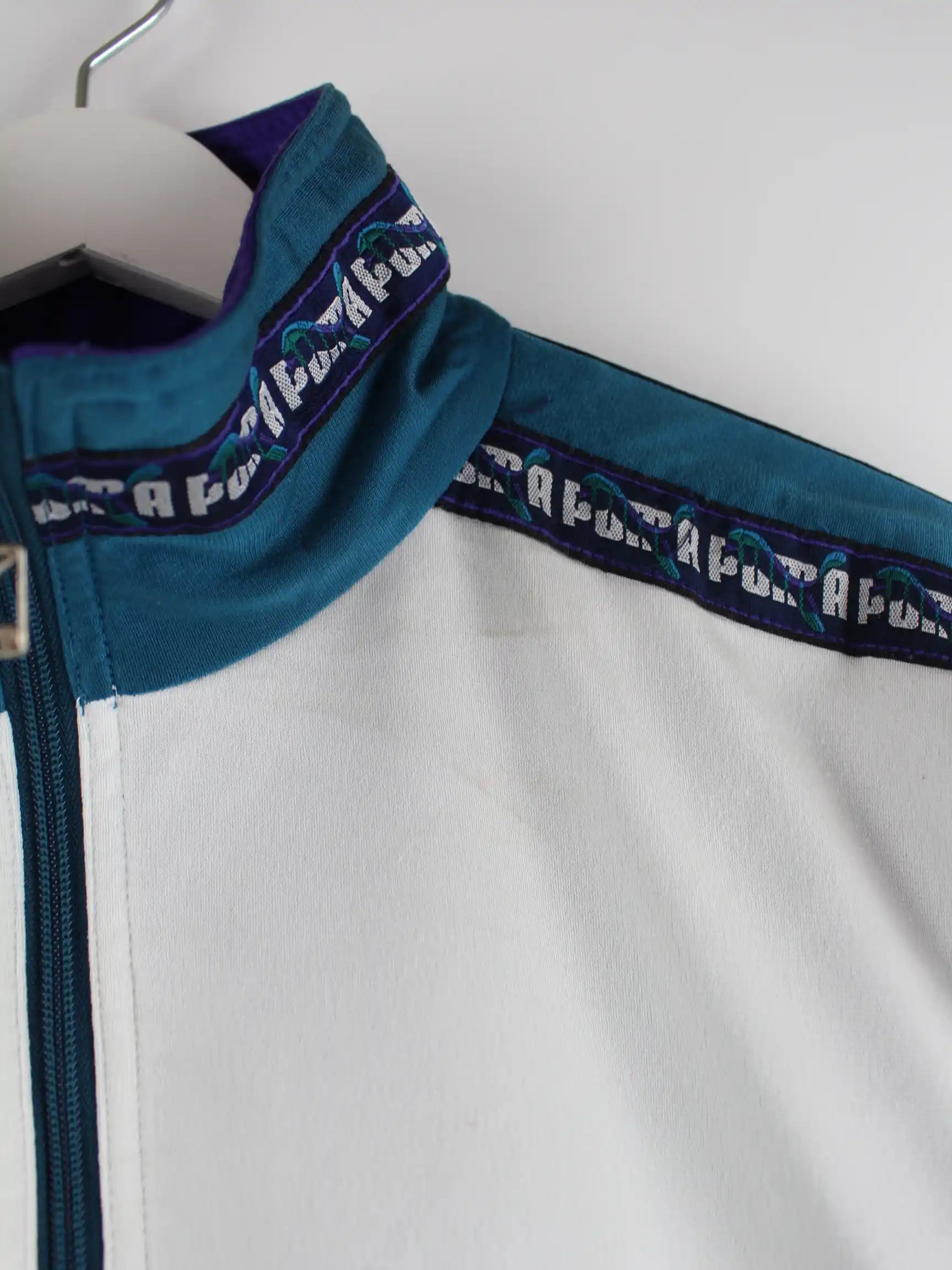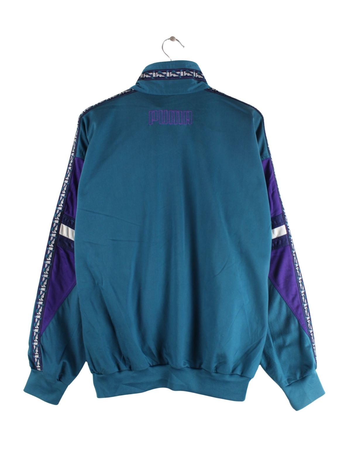 Trainingsjacke des Labels Puma in Größe L aus den 80'ern. Sie ist aus Synthetik hergestellt und in Grün zu haben.